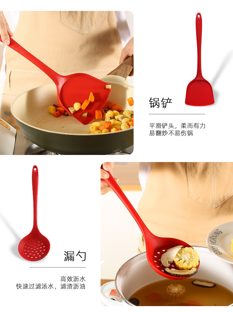제조업체 실리콘 주방 용품 수프 스푼 소쿠리 고온 방지 식품 등급 올인원 일체형 요리 스푼 가정용 도구