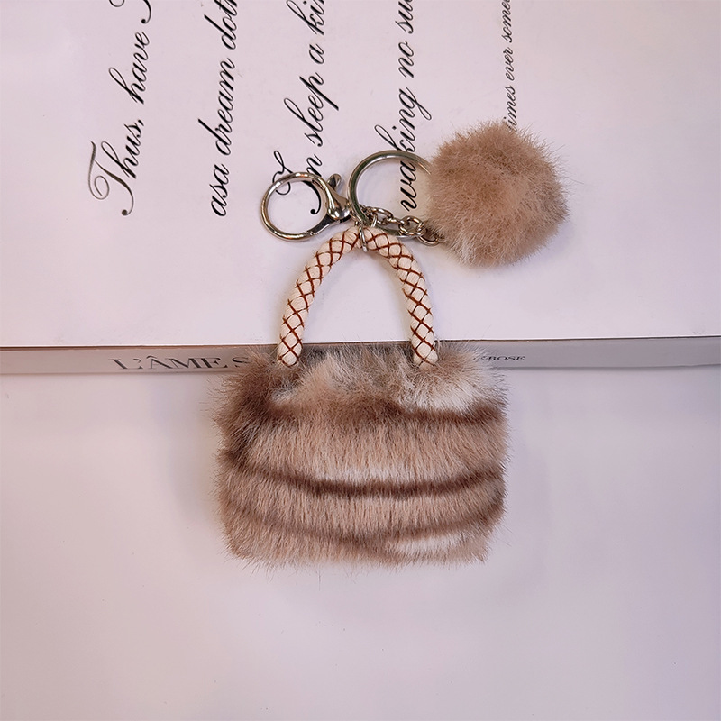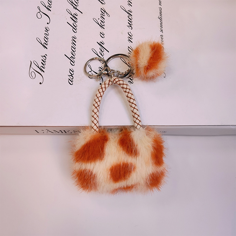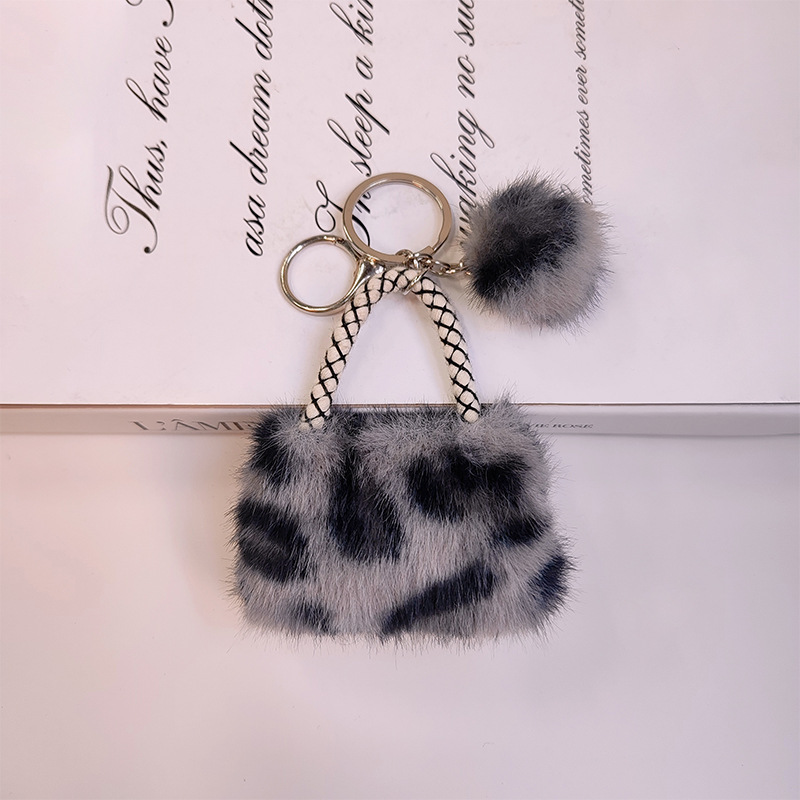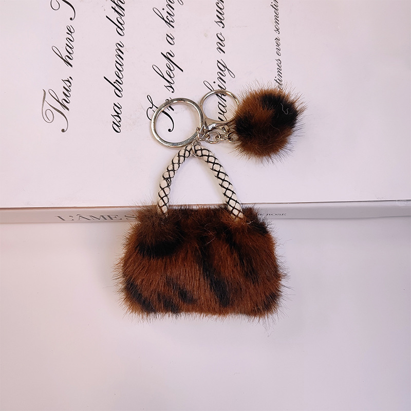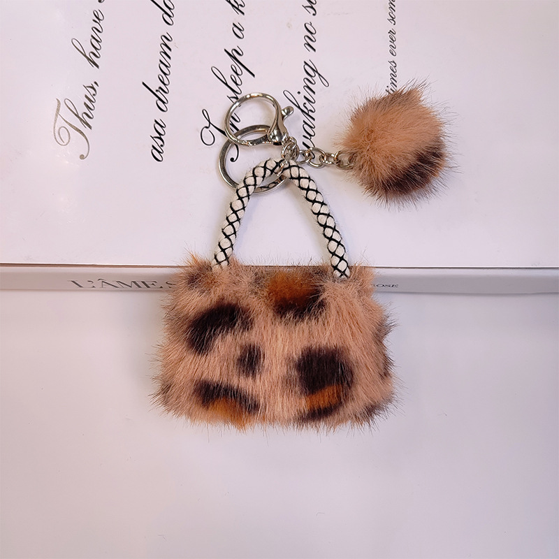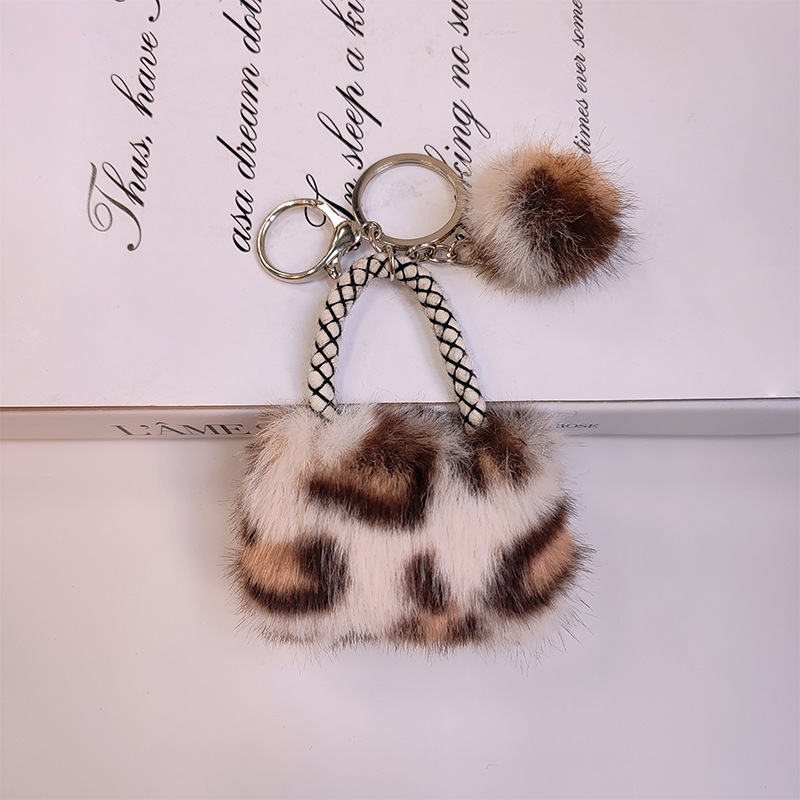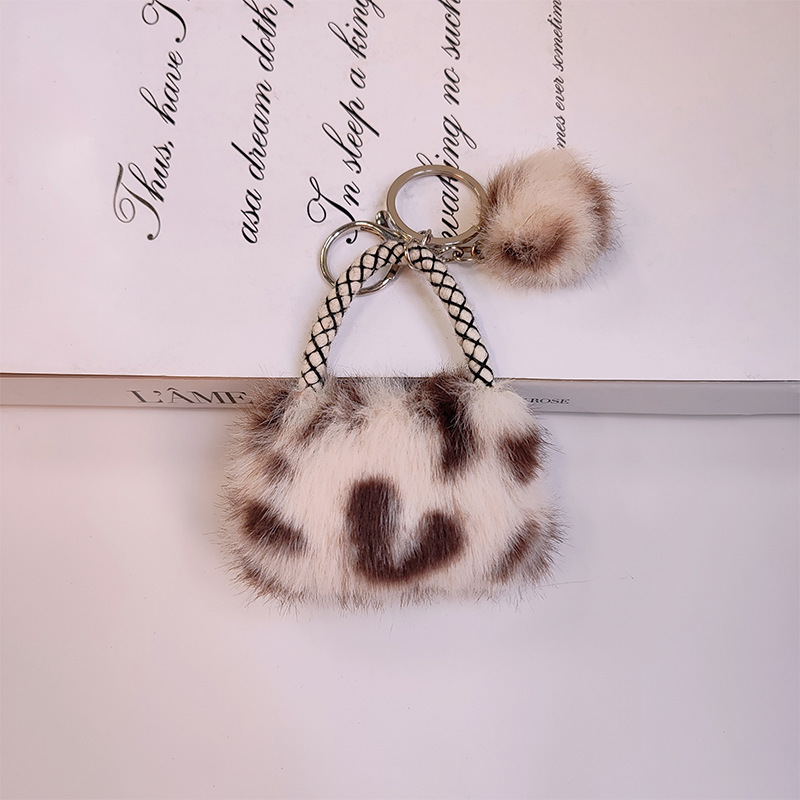 레오파드 프린트 플러시 백 펜던트, 인기 있는 한국 창의적 패션 자동차 핸드백 펜던트, 헤어볼 액세서리 키체인스토어 가기