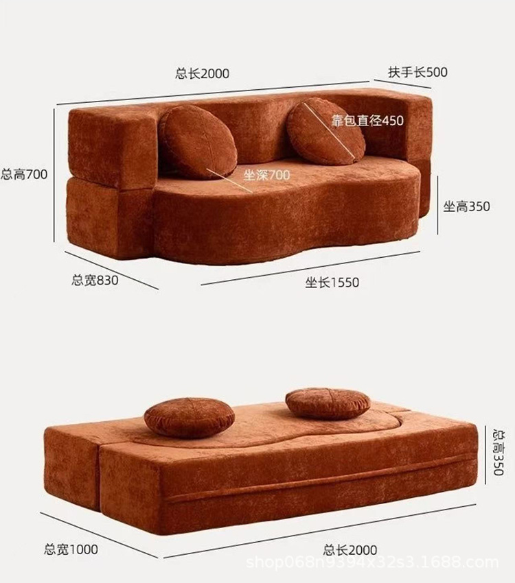 대외 무역 압축 접이식 이중 목적 소파 베드 셔닐 패브릭 소파 소형 가정용 진공 롤 패키지 분리형 및 세탁 가능한 소파