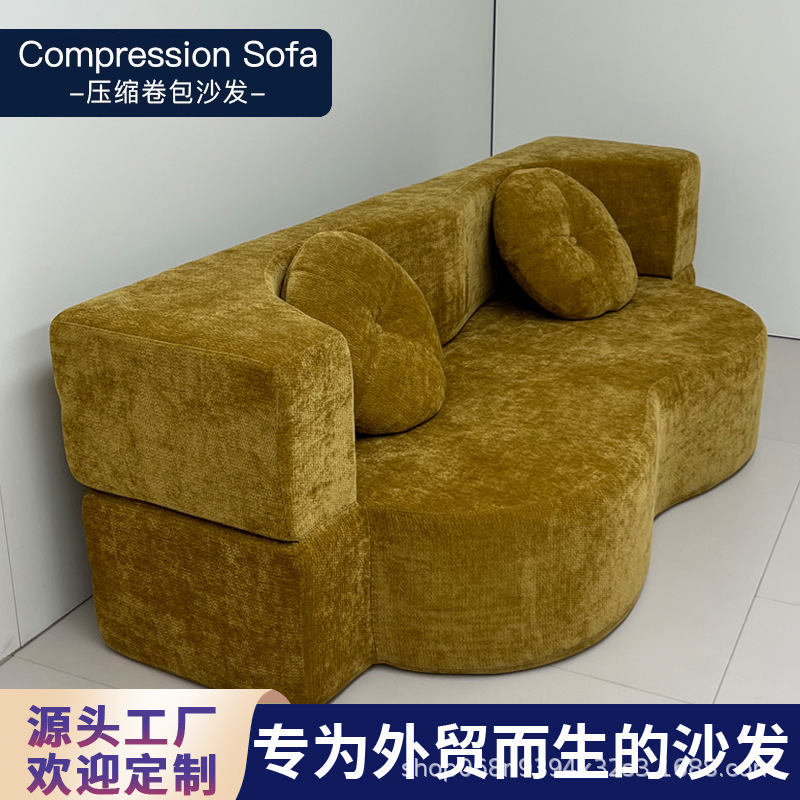 대외 무역 압축 접이식 이중 목적 소파 베드 셔닐 패브릭 소파 소형 가정용 진공 롤 패키지 분리형 및 세탁 가능한 소파스토어 가기