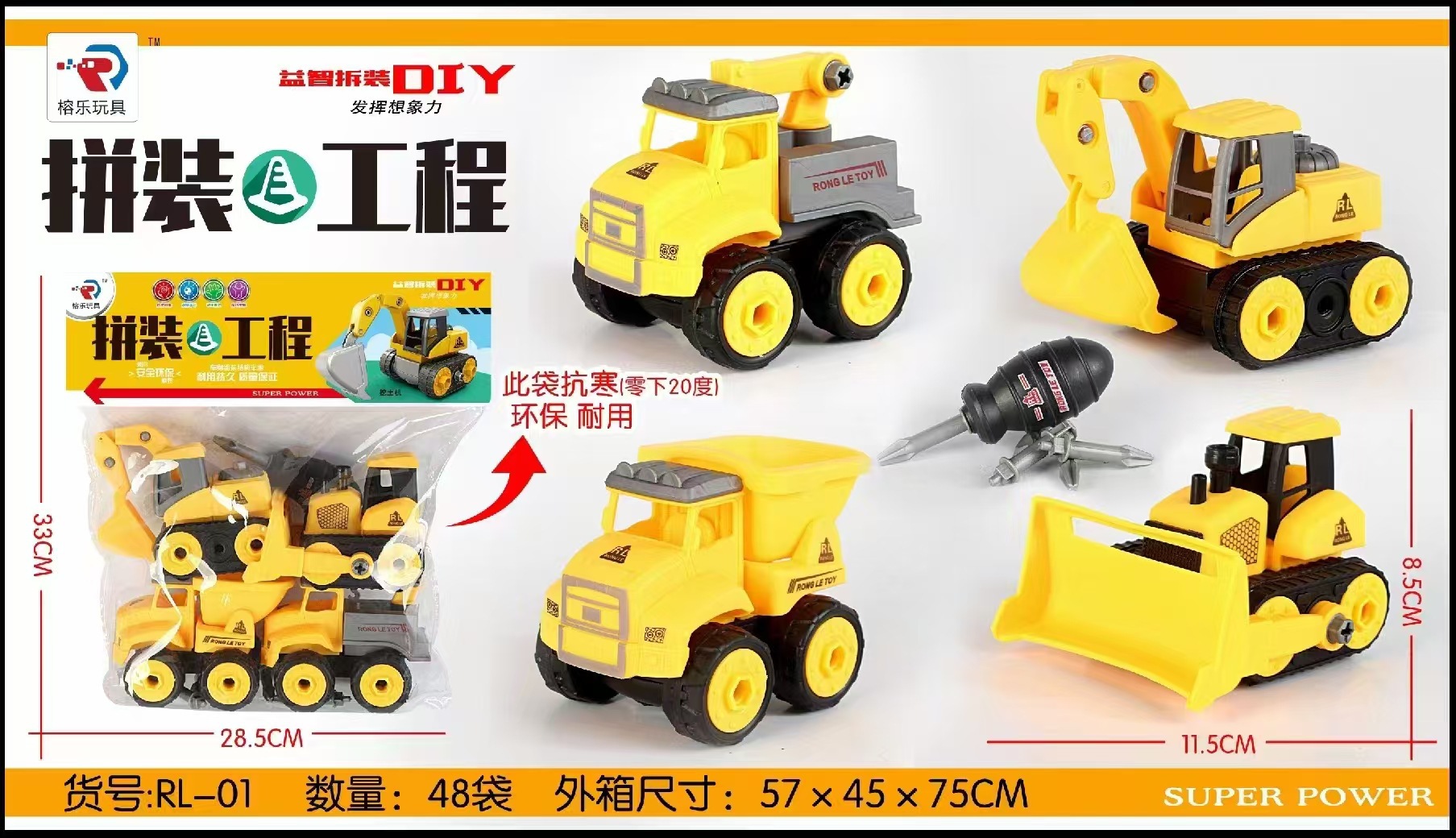 분리형 엔지니어링 차량 조립 세트 어린이 지능 분해 나사 교육 수동 DIY 장난감 관성 자동차스토어 가기