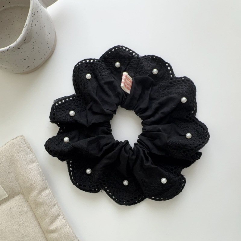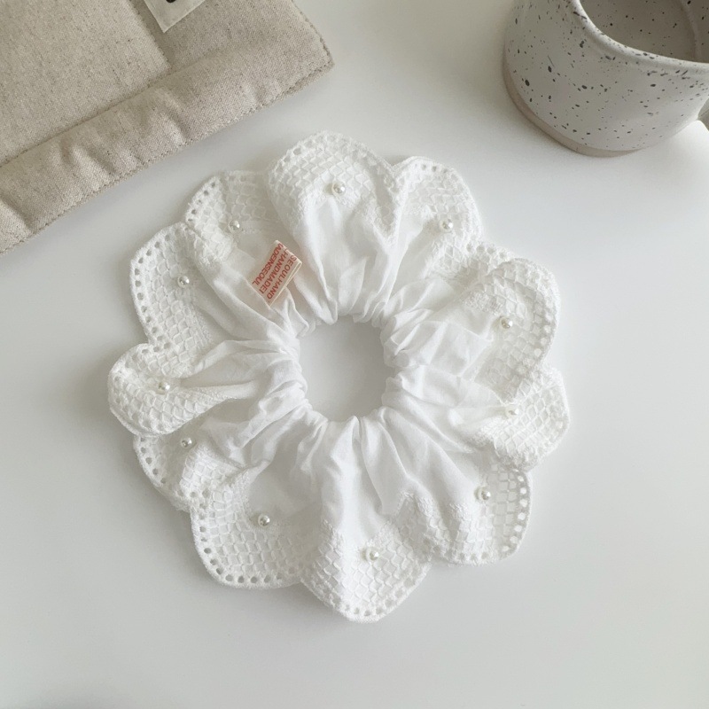 한국의 작은 신선한 진주 자수 레이스 머리끈 2025 새로운 스타일 포니테일 머리 장식 볼 머리띠