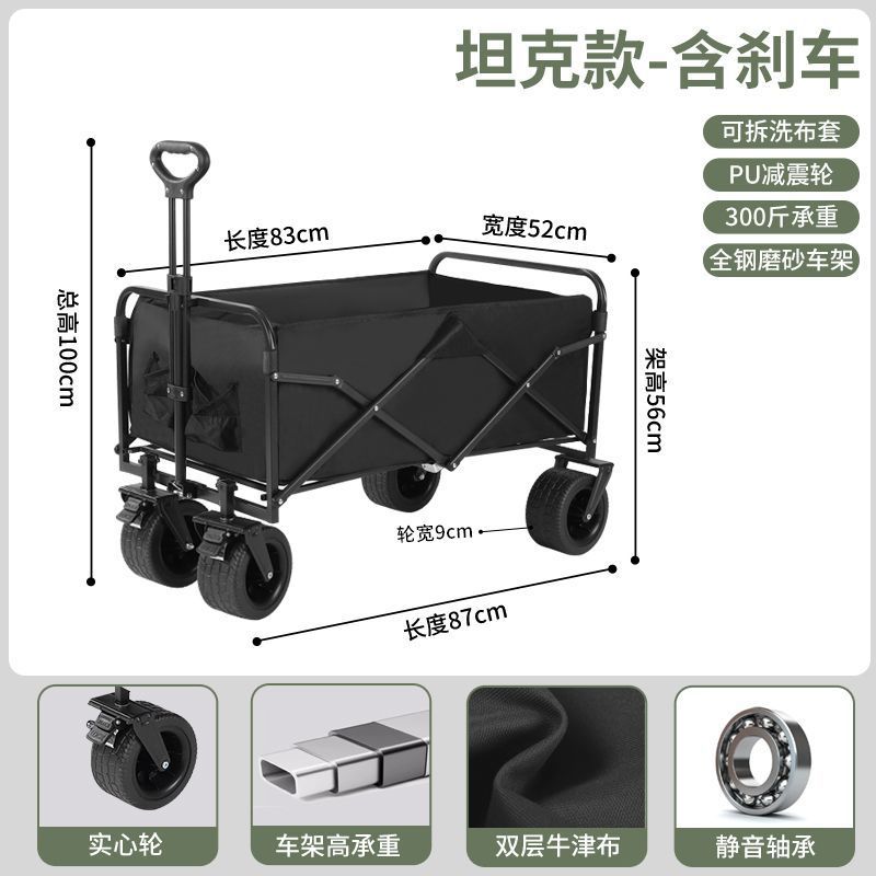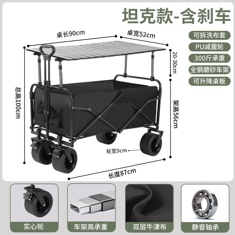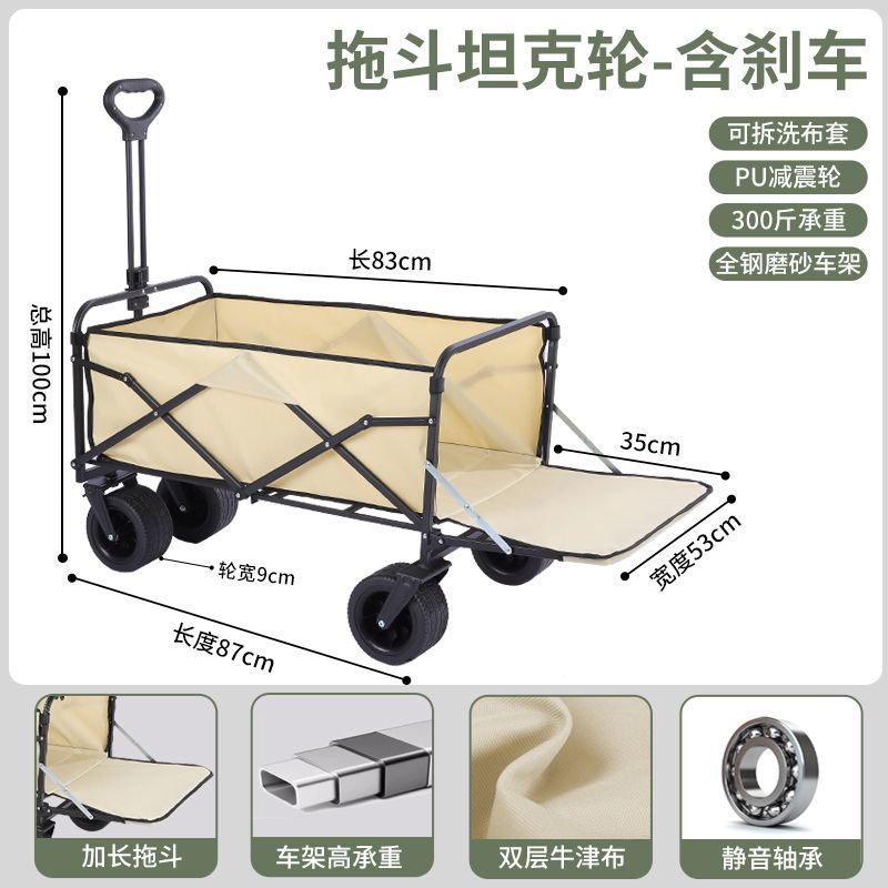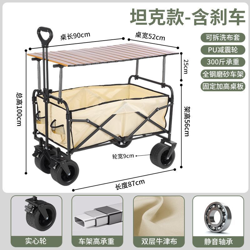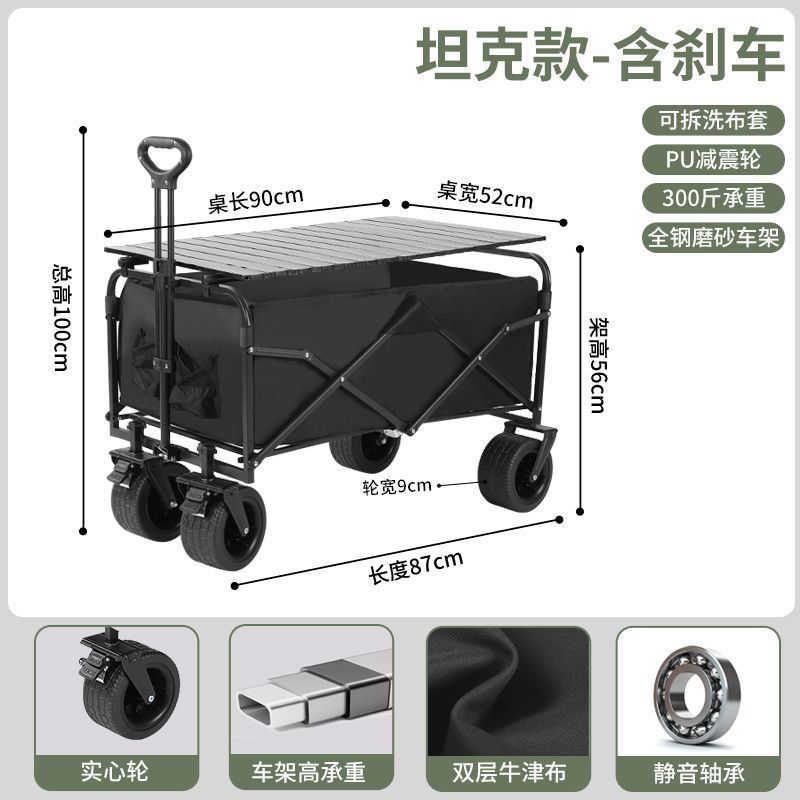 • 캠프카 + 테이블 + 하이트닝 폴 - 뒤로 10inch 탱크 휠 카키/더블 브레이크 회전 가능