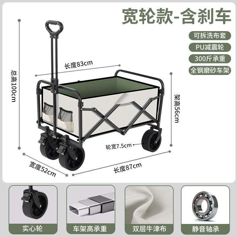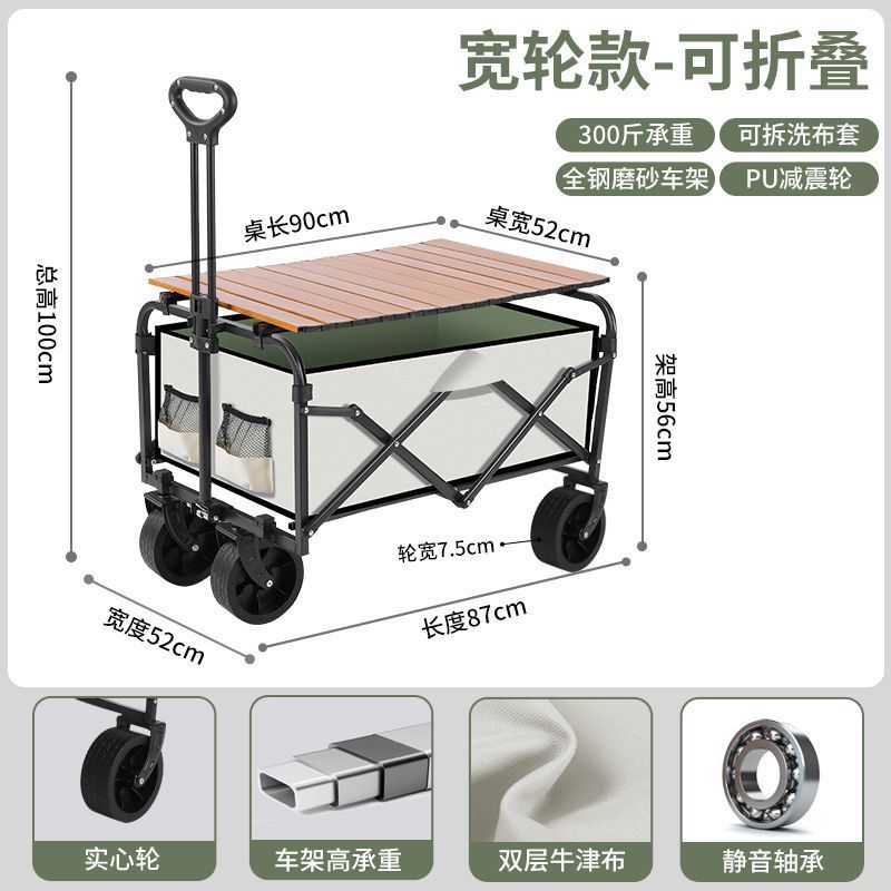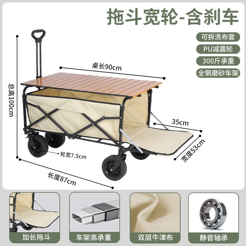 • 캠프카 + 테이블 + 리프팅 로드 - 뒤로 8inch 회전 가능, 넓은 휠 카키/더블 브레이크