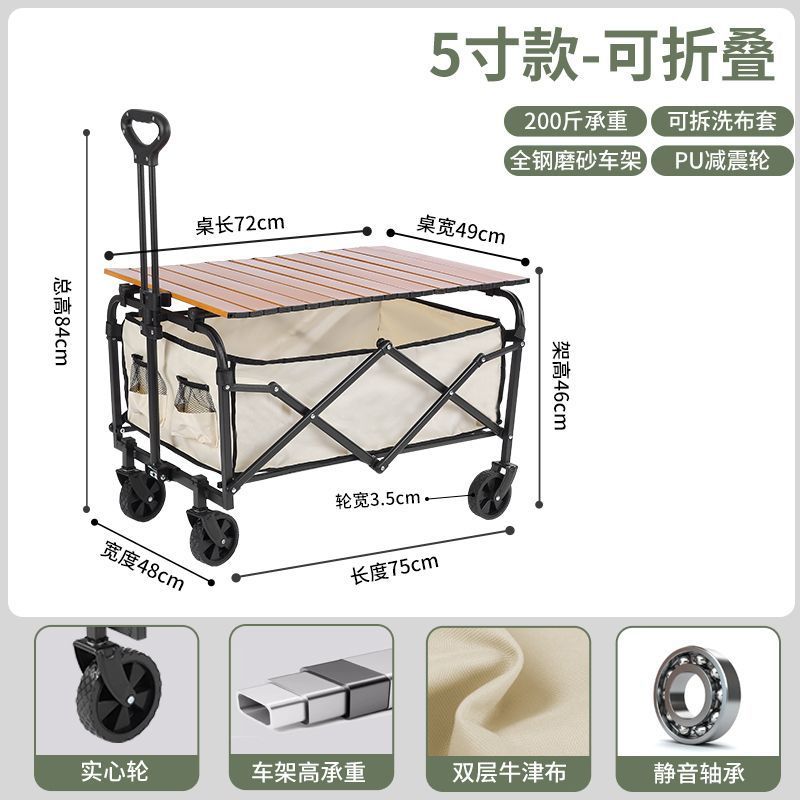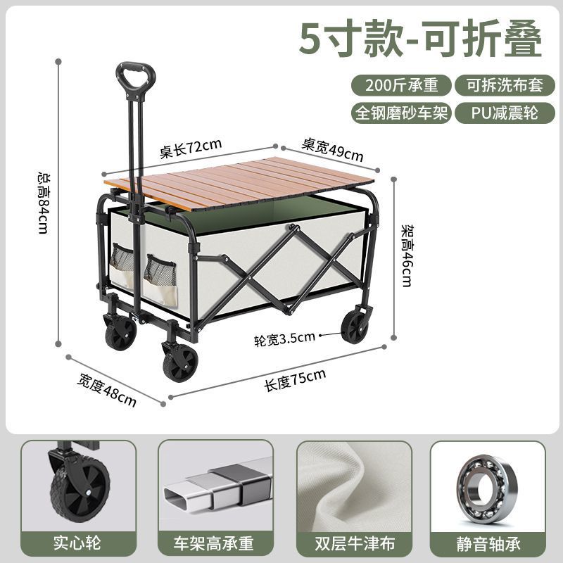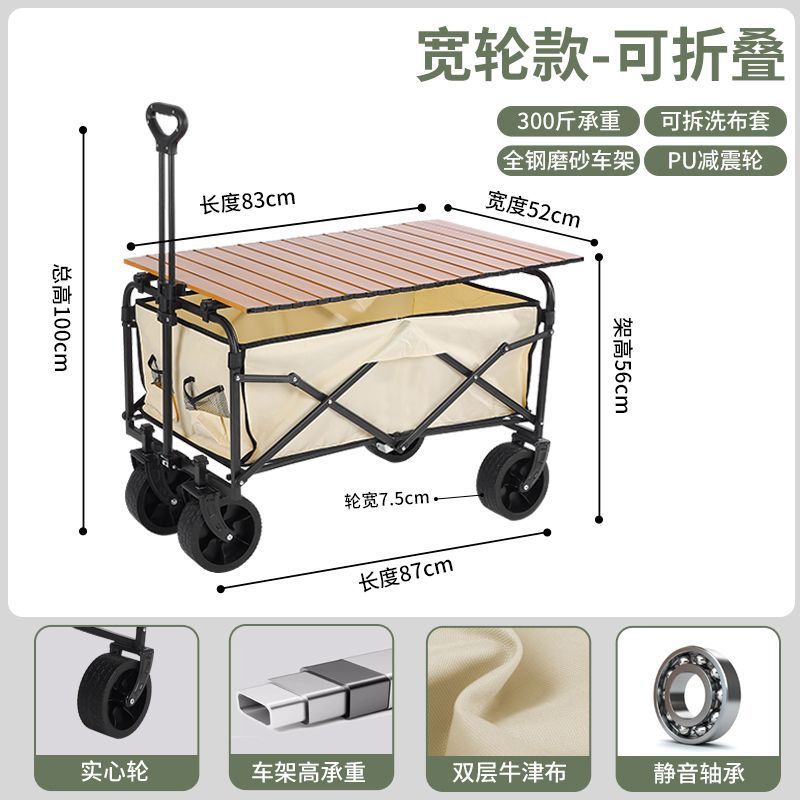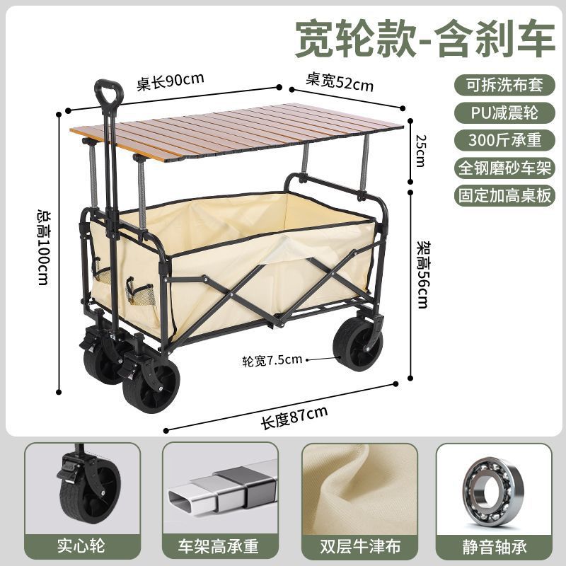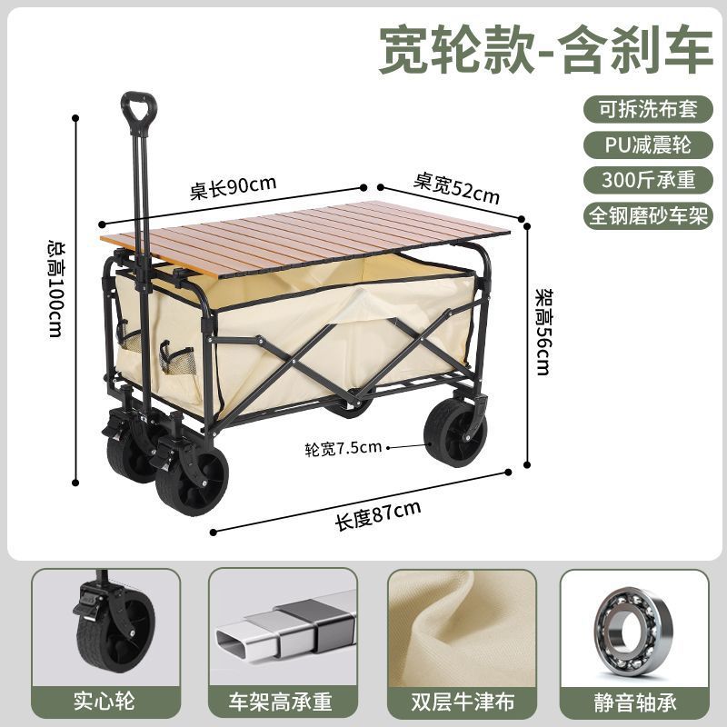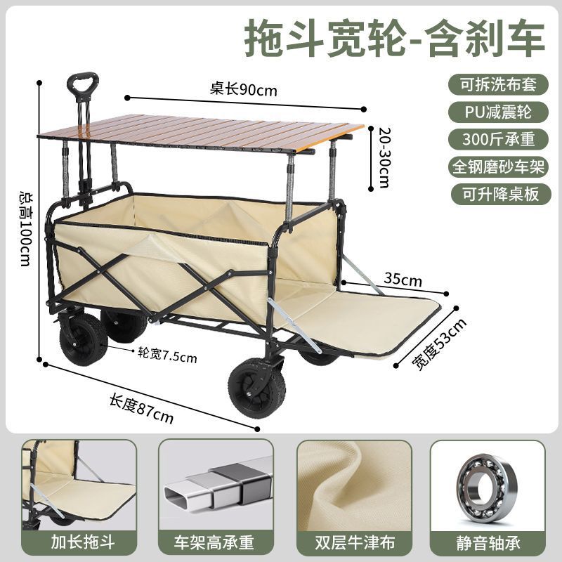 • 캠프카 + 테이블 + 리프팅 로드 - 뒤로 8inch 회전 가능, 넓은 바퀴 베이지/더블 브레이크