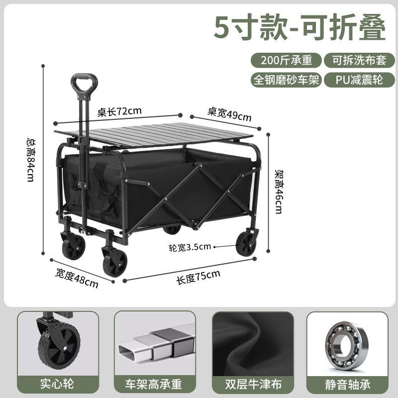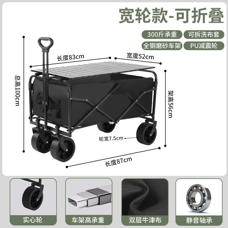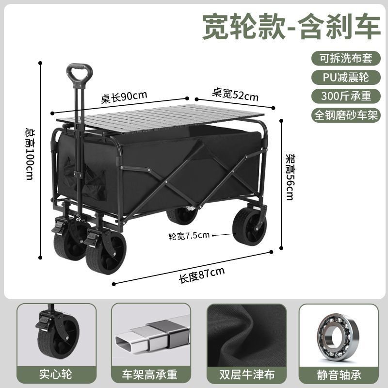 • 캠프카 + 테이블 + 리프팅 로드 - 뒤로 8inch 회전 가능, 넓은 휠 블랙/더블 브레이크
