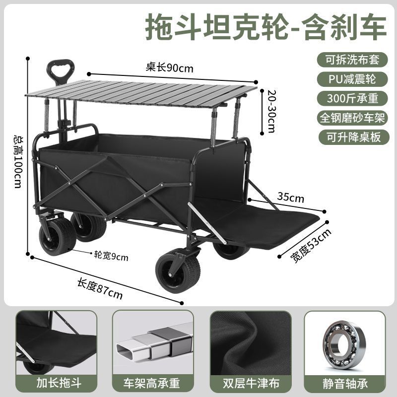 • 캠프카 + 테이블 + 하이트닝 폴 - 뒤로 10inch 탱크 휠 블랙/더블 브레이크 회전 가능