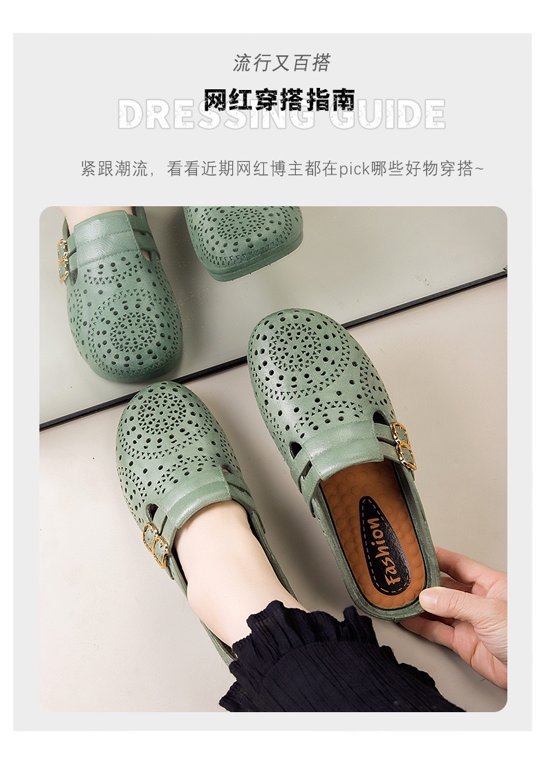 여름 여성 겉옷 바오터우 중공 슬리퍼 플랫 캐주얼 쿨 하프 슬리퍼 패션 나막신 여성 슬리퍼스토어 가기