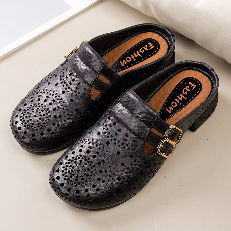 여름 여성 겉옷 바오터우 중공 슬리퍼 플랫 캐주얼 쿨 하프 슬리퍼 패션 나막신 여성 슬리퍼