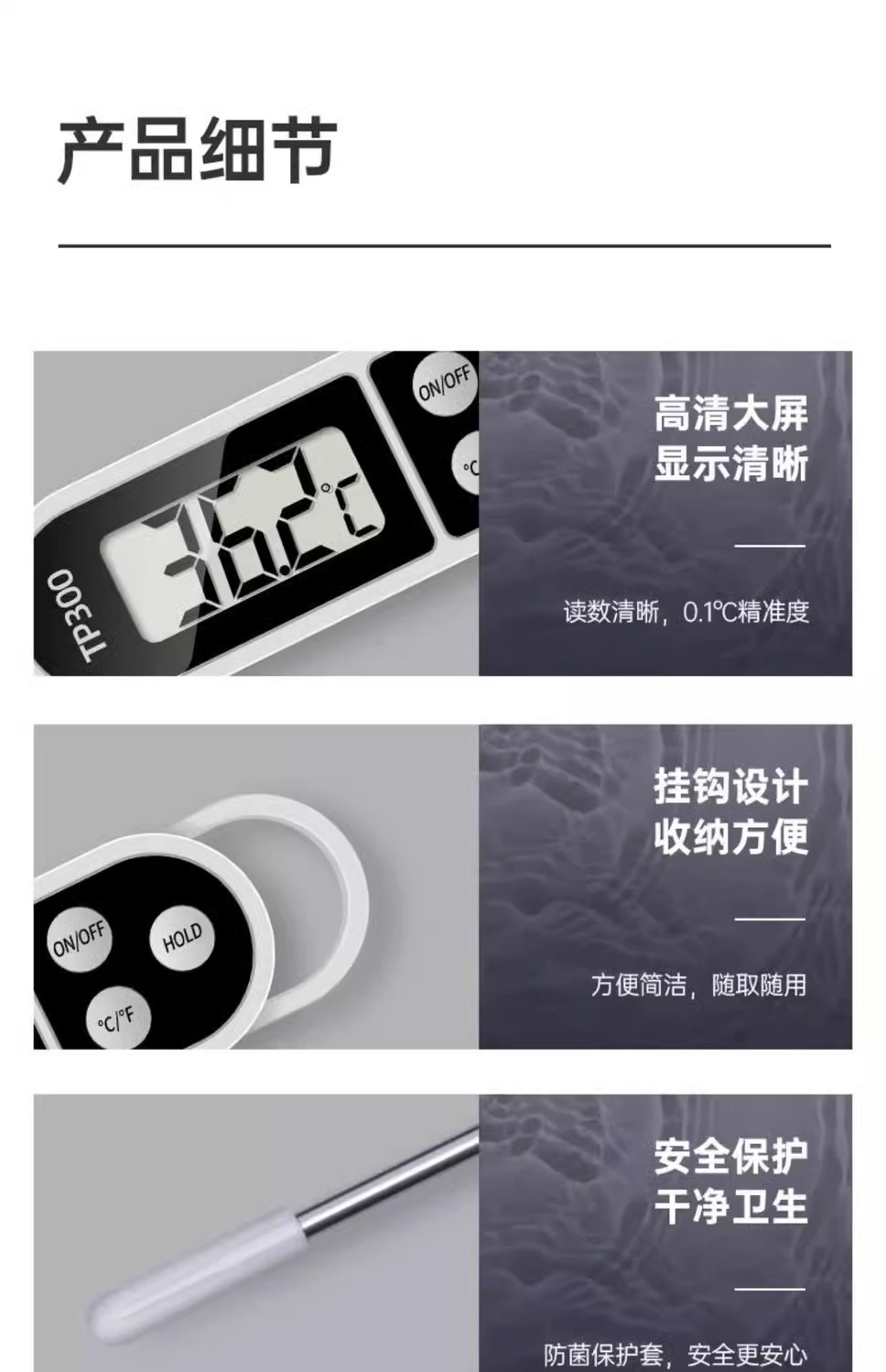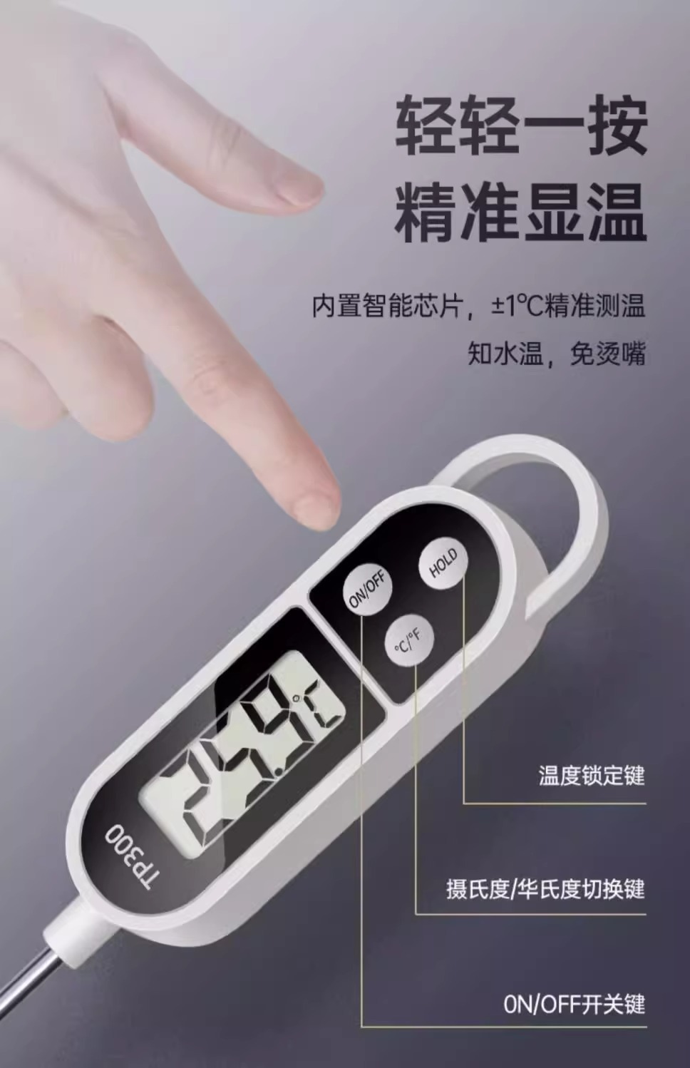 식품 온도계 가정용 고정밀 프로브 유형 아기 우유 온도계 주방 베이킹 및 튀김 수온 오일 온도계
