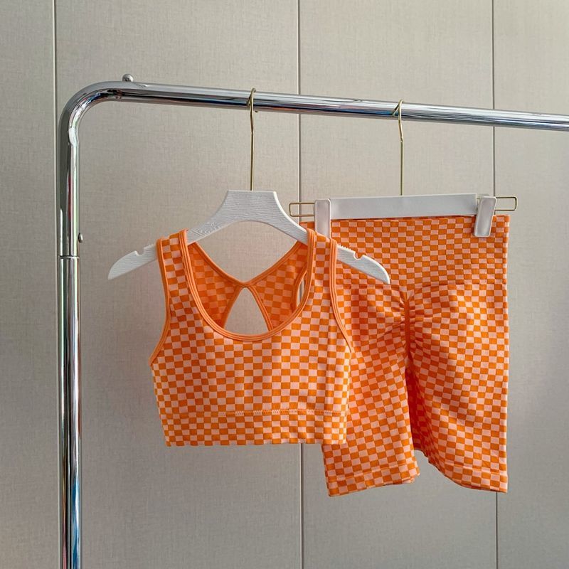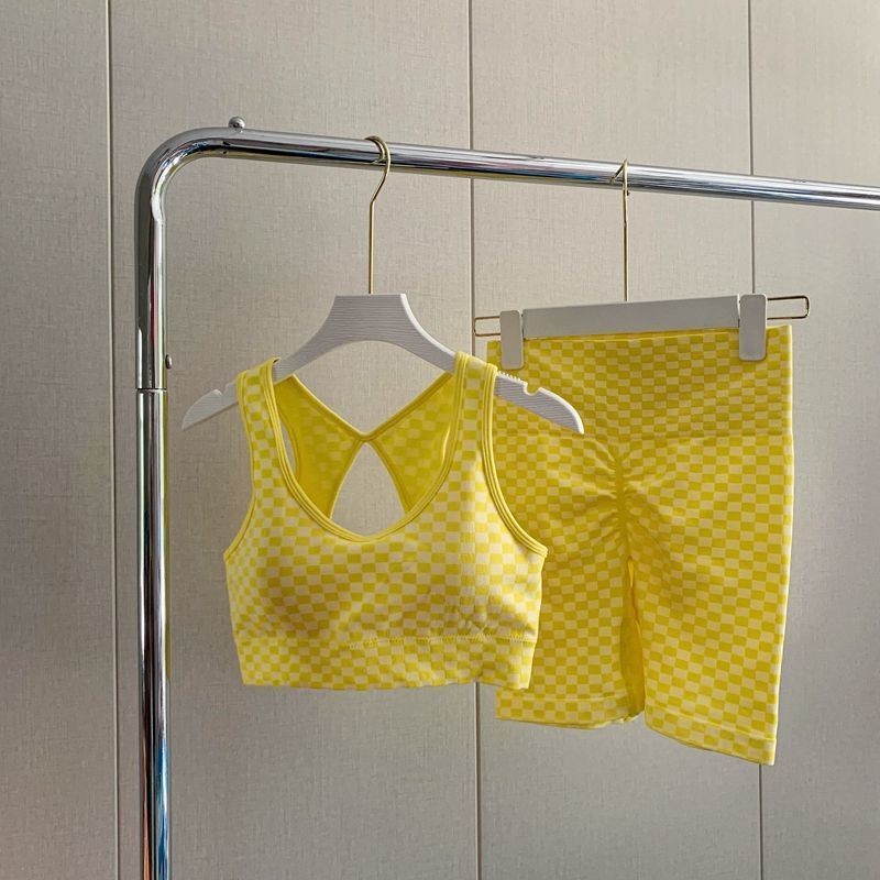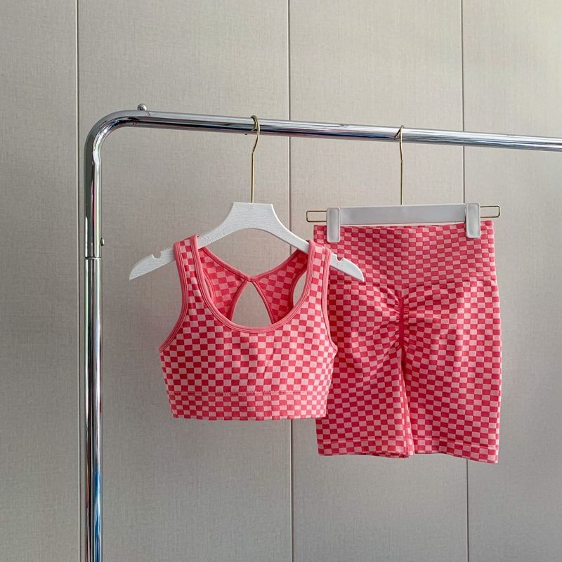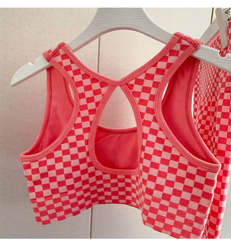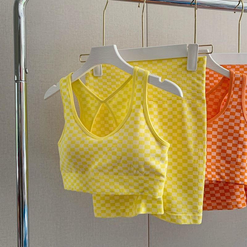 충격 방지 조끼 러닝 피트니스 스포츠 속옷 얇은 통기성 슈트 새로운 인터넷 연예인 바둑판 격자 무늬 요가 슈트스토어 가기