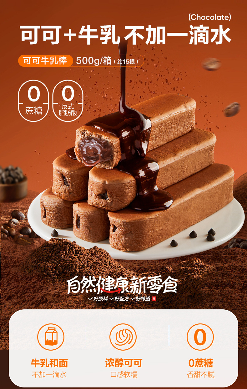 Bestore 천층 우유 스틱 토스트 빵 500g 아침 식사 전체 상자 우유 코코아 케이크 건강 간식스토어 가기
