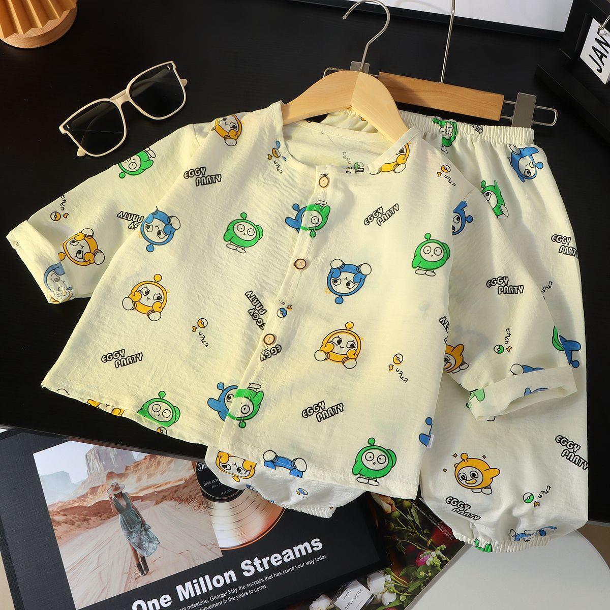 잠옷 여름 어린이 얇은 만화 새로운 투피스 세트 아기 에어컨 옷 가정 의류 세트 봄과 가을 소녀