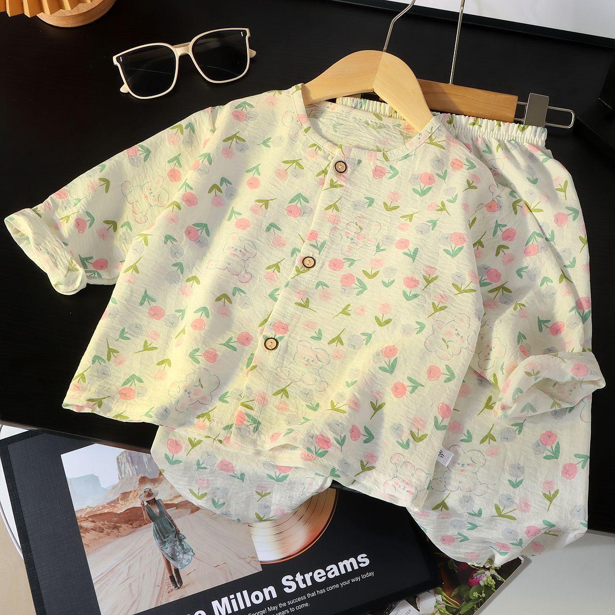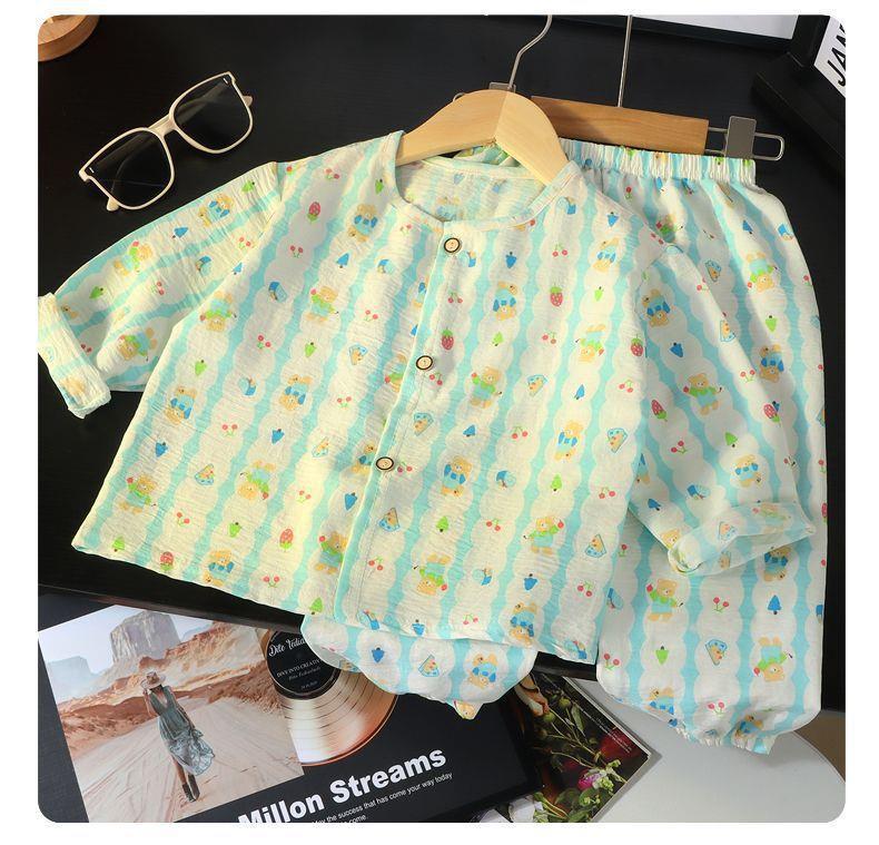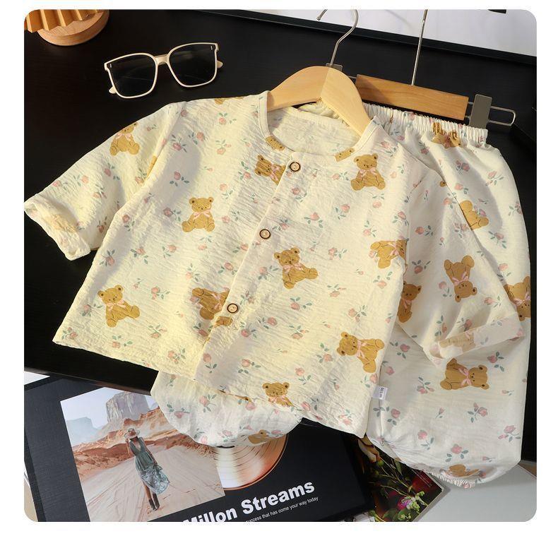 잠옷 여름 어린이 얇은 만화 새로운 투피스 세트 아기 에어컨 옷 가정 의류 세트 봄과 가을 소녀스토어 가기
