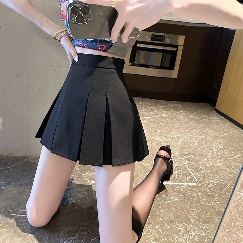 블랙 플리츠 스커트 봄 여름 2024 새로운 핫 소녀 미니 스커트 작은 하이 웨이스트 정장 스커트