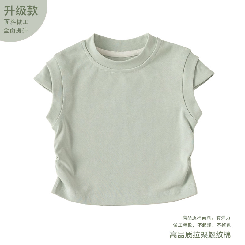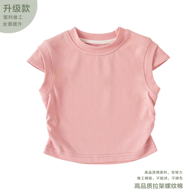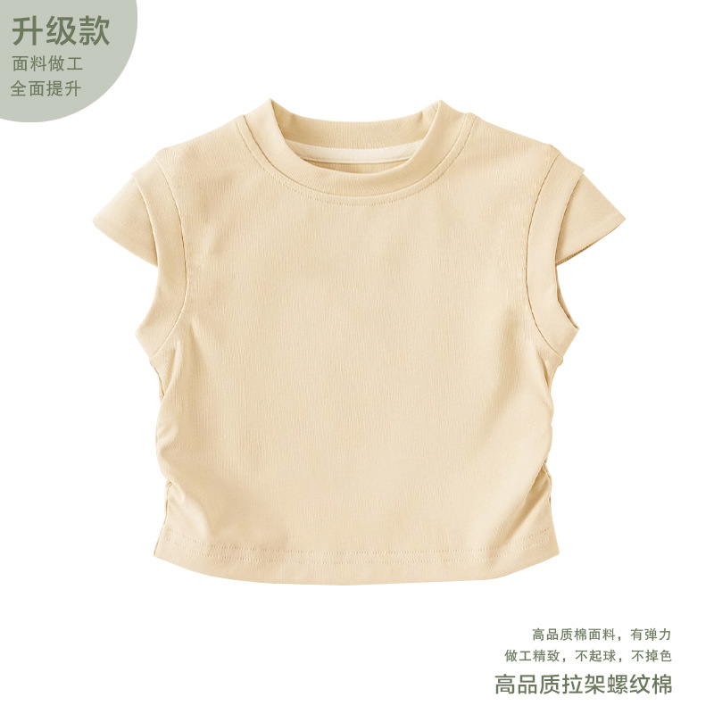 여자 반팔 2025 여름 어린이 솔리드 컬러 티셔츠 짧은 아기 소녀 캐주얼 플라이 슬리브 탑 맞춤 처리