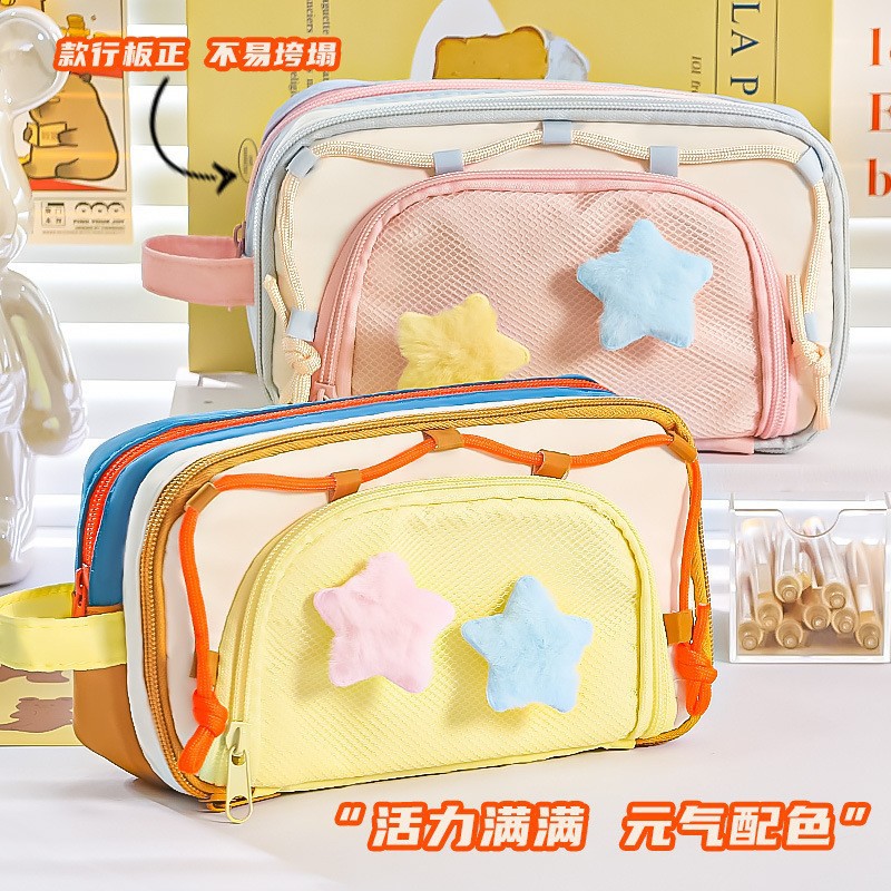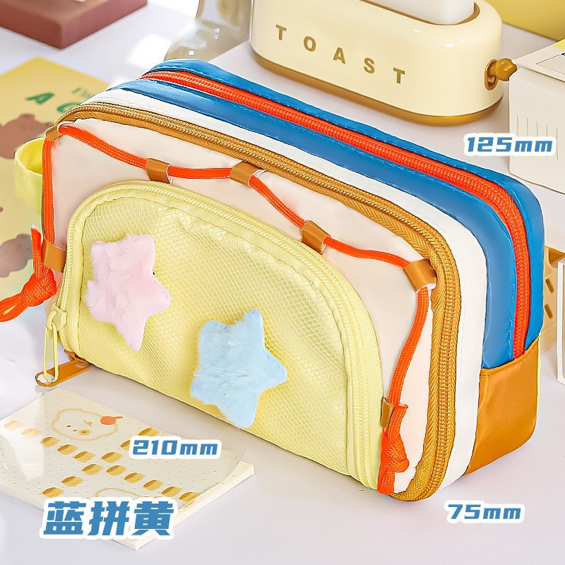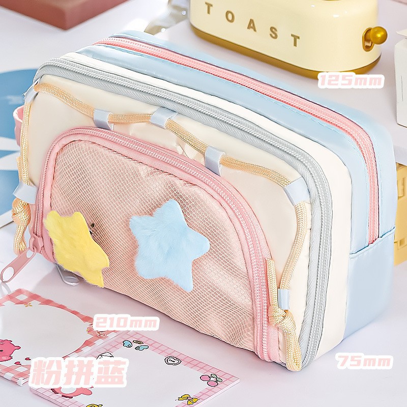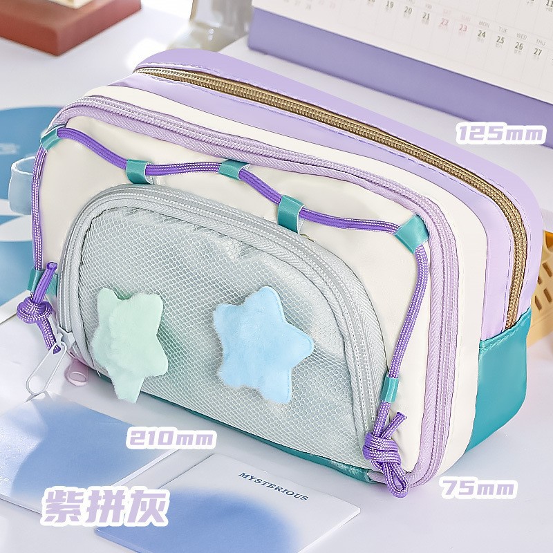 색상이 혼합된 다층 대용량 안개꽃 필통, 미려한 느낌을 주는 틈새 손, 초중등 학생을 위한 다기능 문구 가방