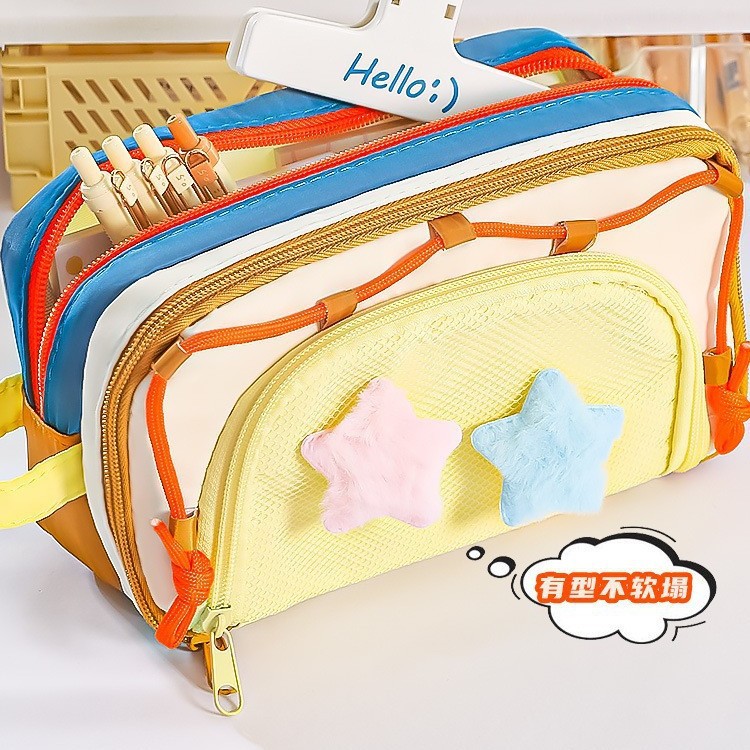 색상이 혼합된 다층 대용량 안개꽃 필통, 미려한 느낌을 주는 틈새 손, 초중등 학생을 위한 다기능 문구 가방스토어 가기