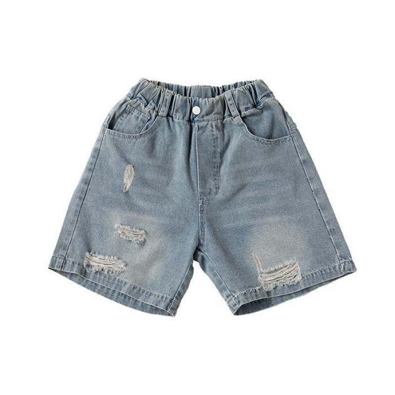 여름 남아용 찢어진 데님 반바지, 5부 팬츠, 소프트 데님 반바지, 루즈하고 얇은 스타일