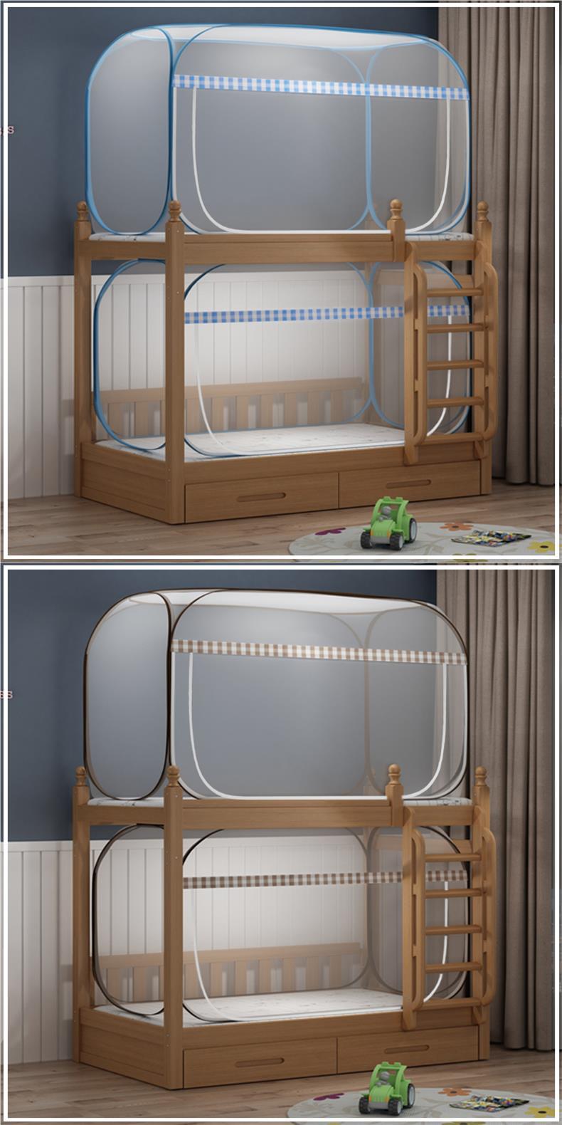모기장 몽골리안 스타일 학생 기숙사 1.35m 이층 침대 설치가 필요 없는 접이식 이층 침대 사다리형 바닥스토어 가기