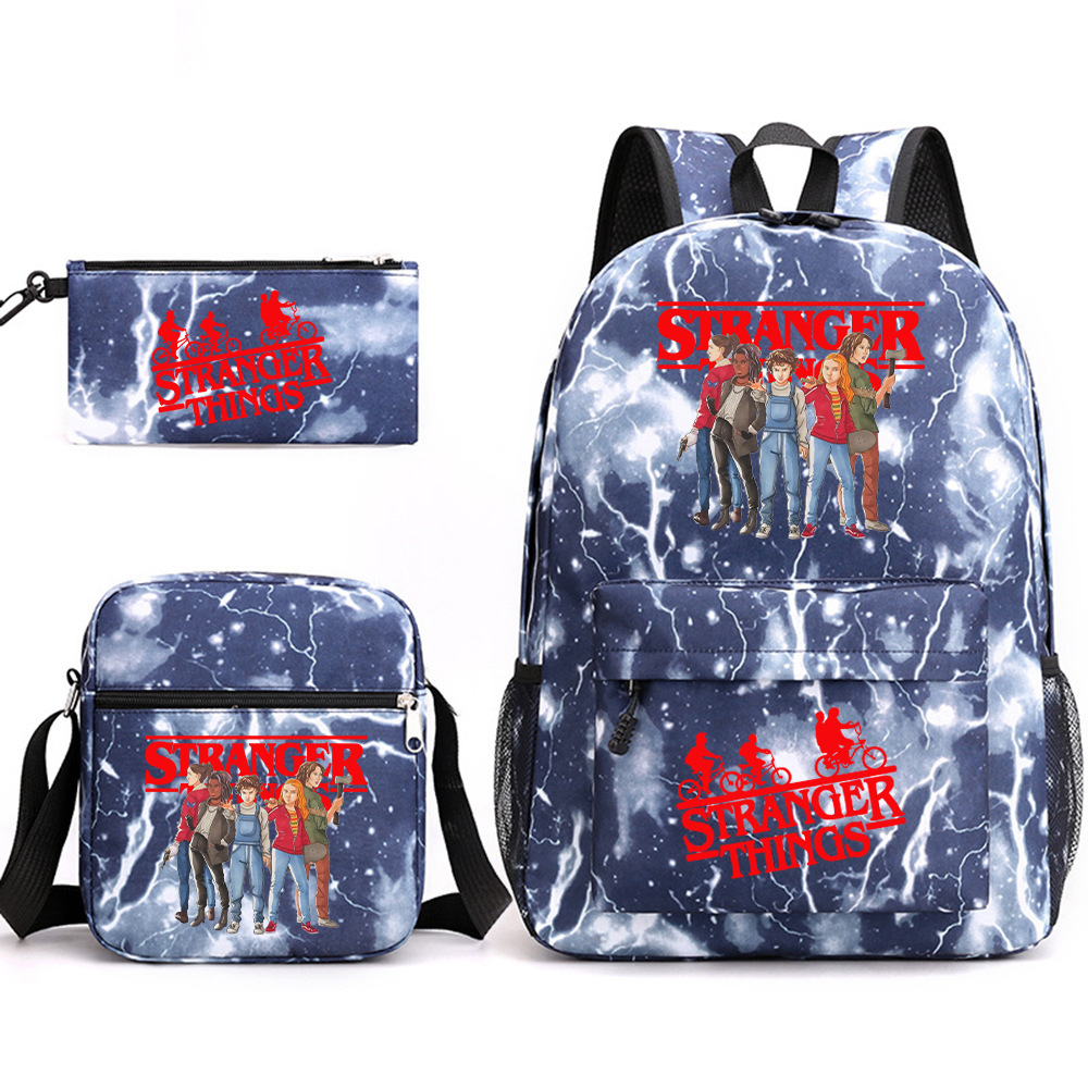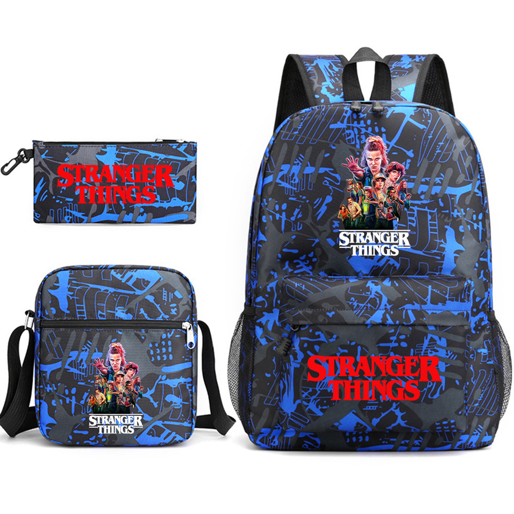 Stranger Things 3피스 학교 가방 캐주얼 캔버스 배낭 남성 및 여성 학생 배낭 인쇄 대용량 야외 가방