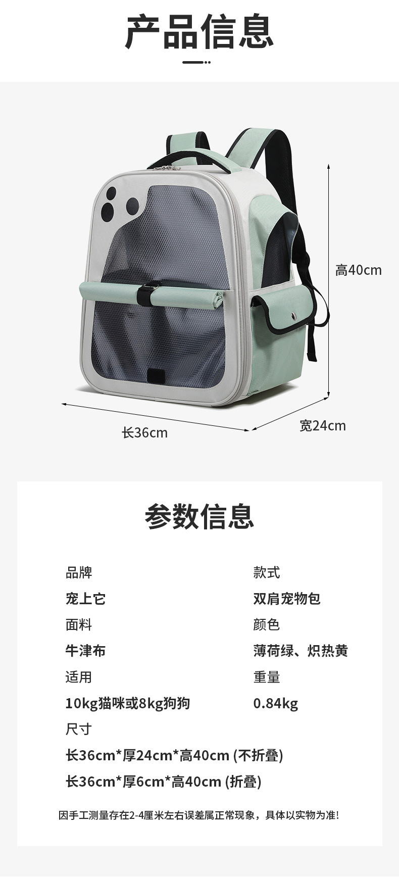 고양이 가방, 휴대용, 통기성, 대용량 휴대용 개 가방, 편리한 수령 방수 옥스포드 천 배낭 애완 동물 가방스토어 가기