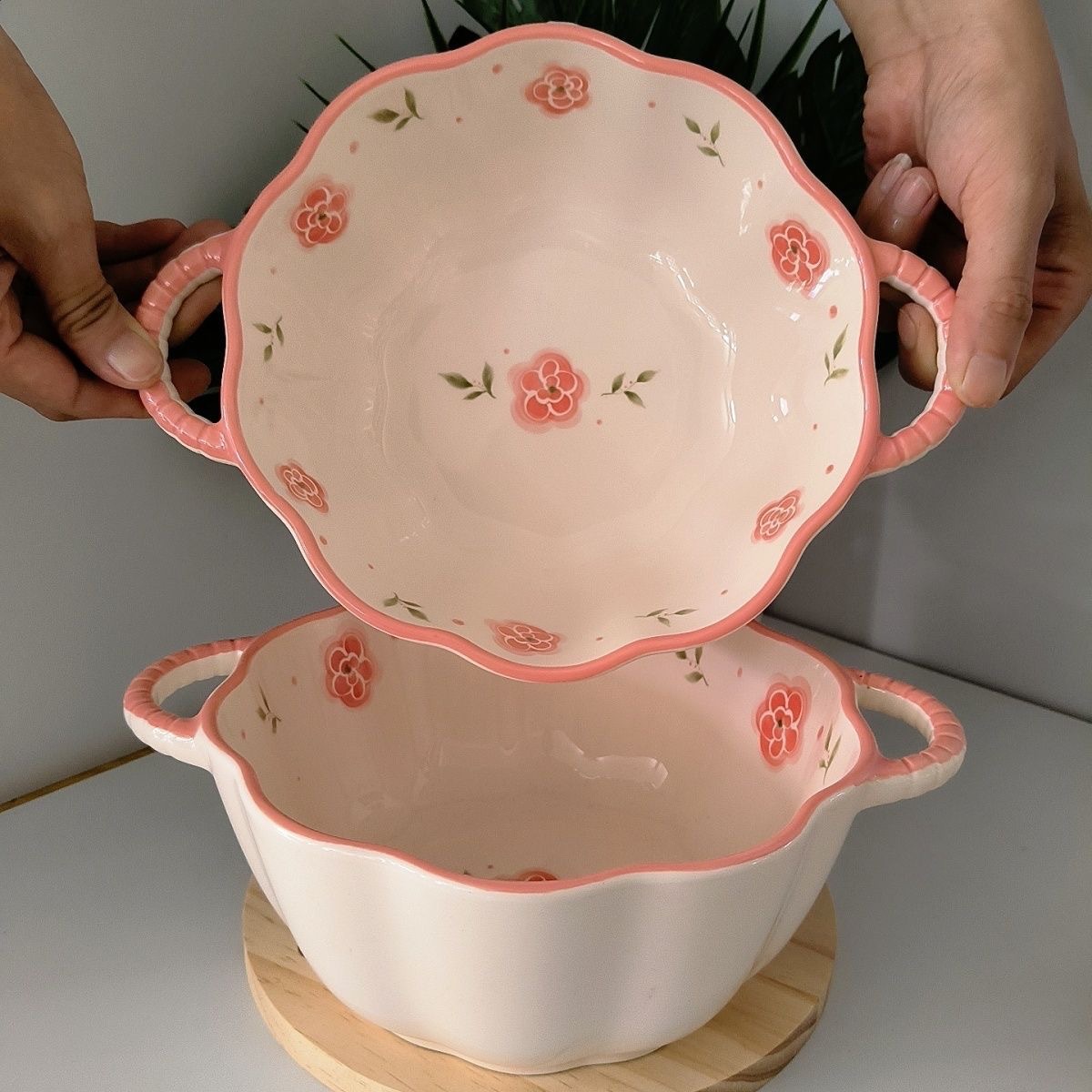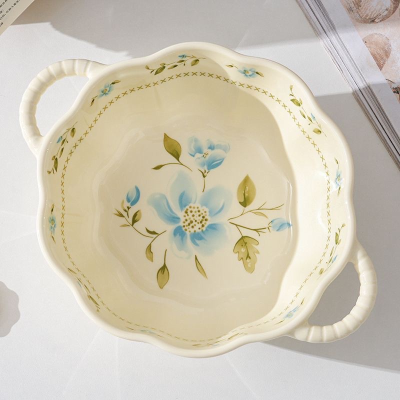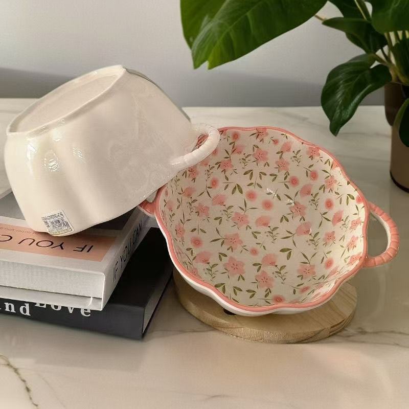 신선한 인스 인스턴트 국수 그릇, 양귀 호박 그릇, 가정용 국수 그릇, 고급스러운 세라믹 그릇, 유약 색상 화상 방지 특수 모양의 그릇