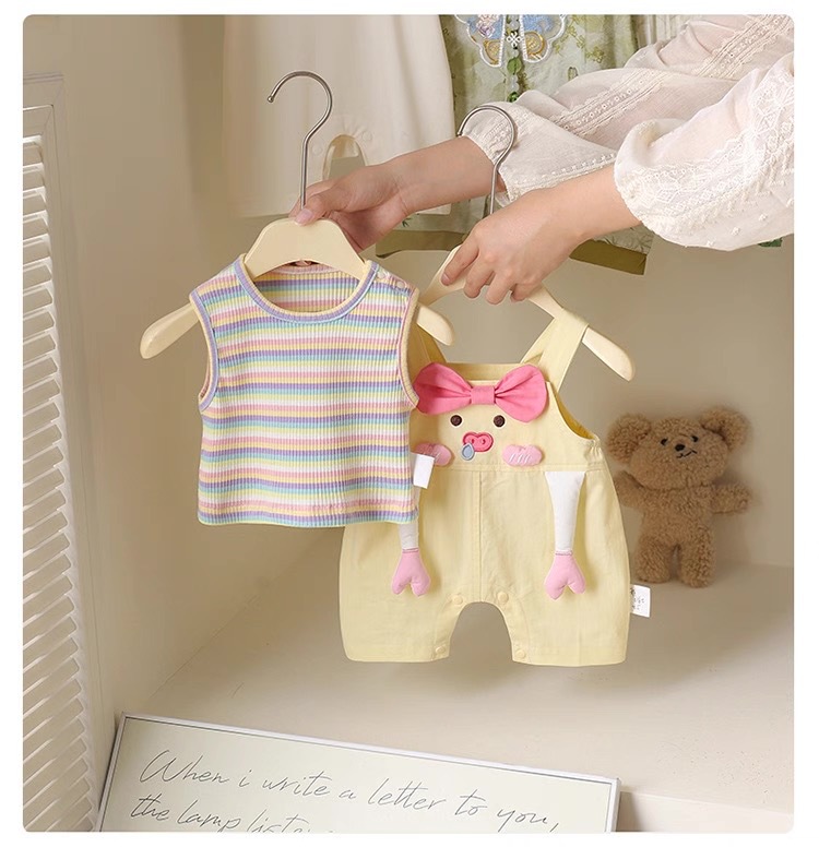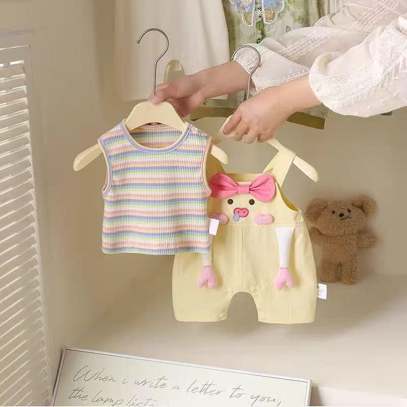 2025 아기 소녀 크롤링 옷 어린이 여름 반팔 작업복 유아 아기 만화 돼지 투피스 세트