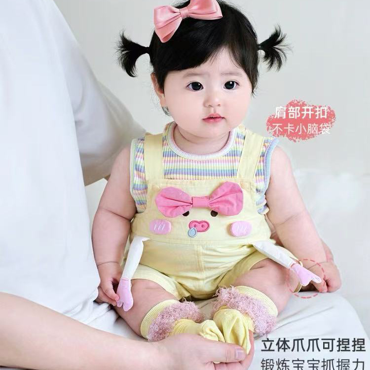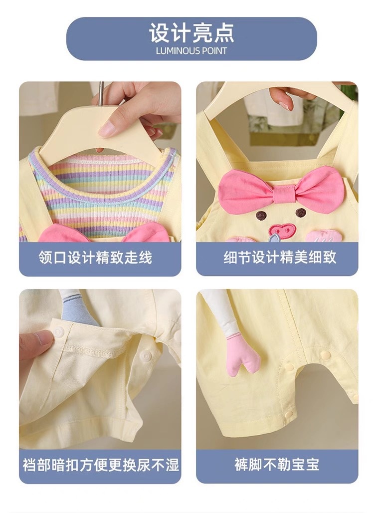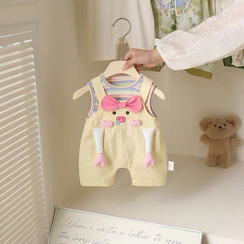 2025 아기 소녀 크롤링 옷 어린이 여름 반팔 작업복 유아 아기 만화 돼지 투피스 세트스토어 가기