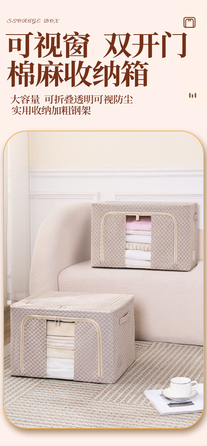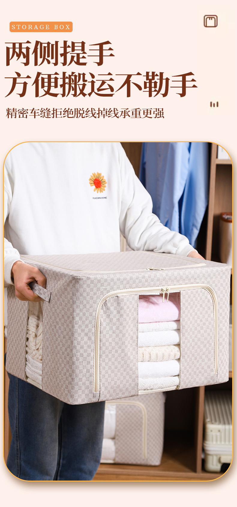 격자 무늬 직물 보관 상자 접이식 가정용 대용량 정리 이불 보관 의류 5MM 강철 프레임 보관 상자스토어 가기