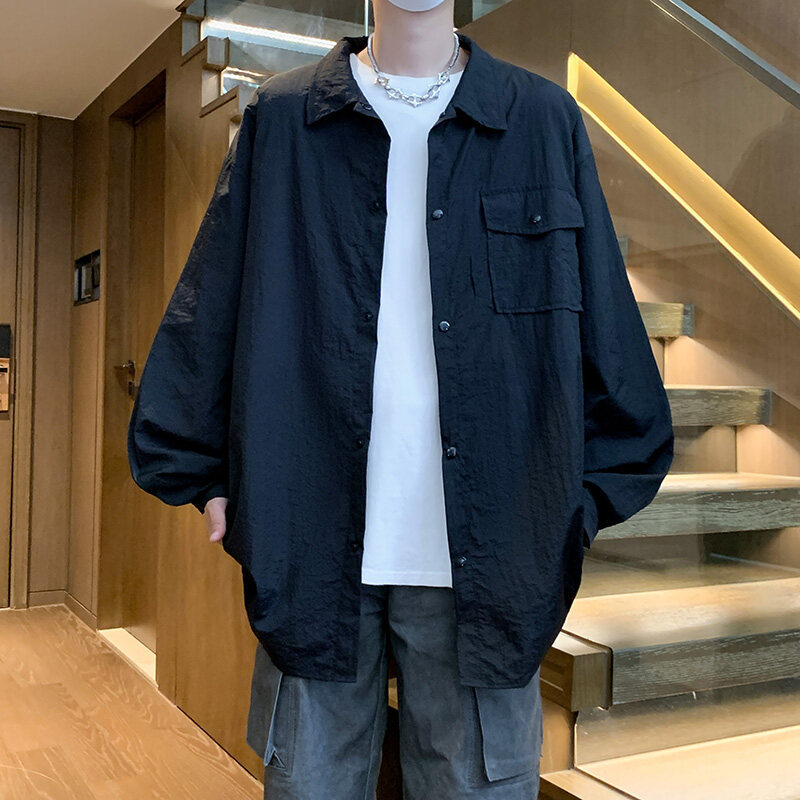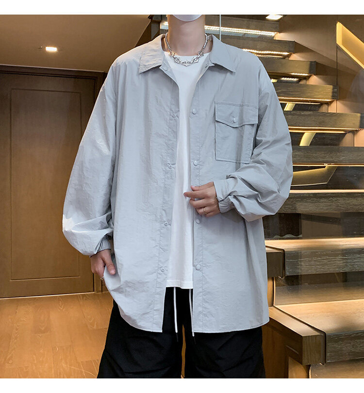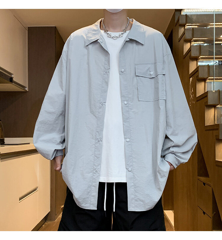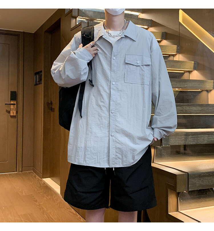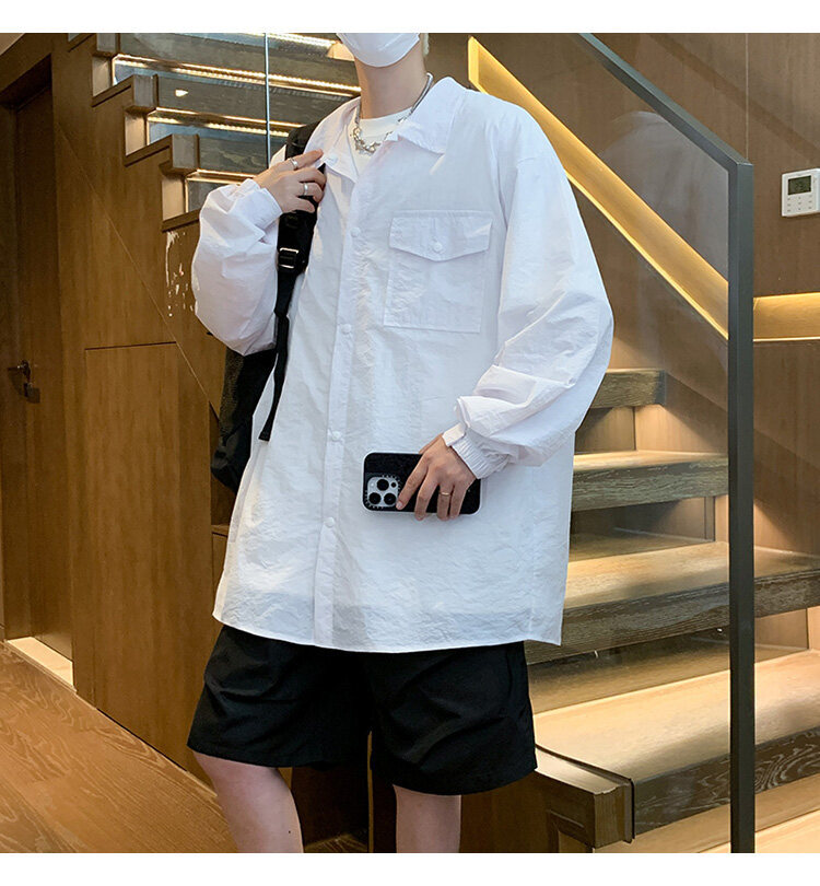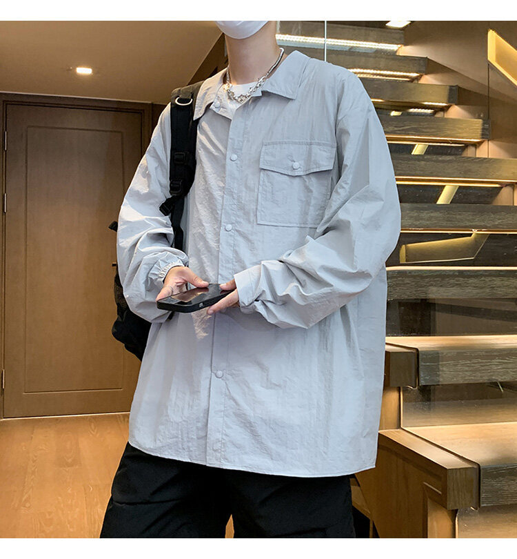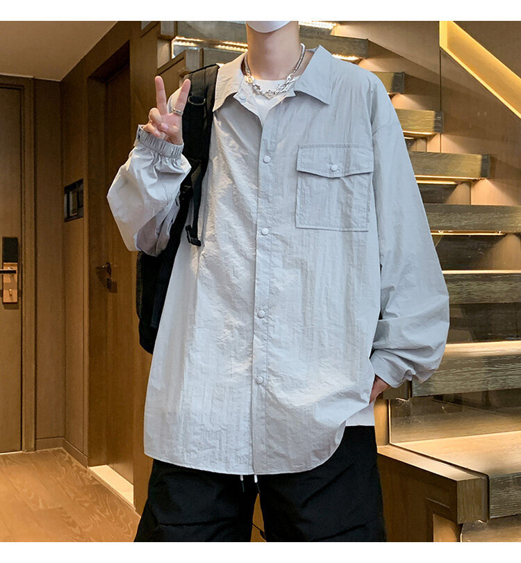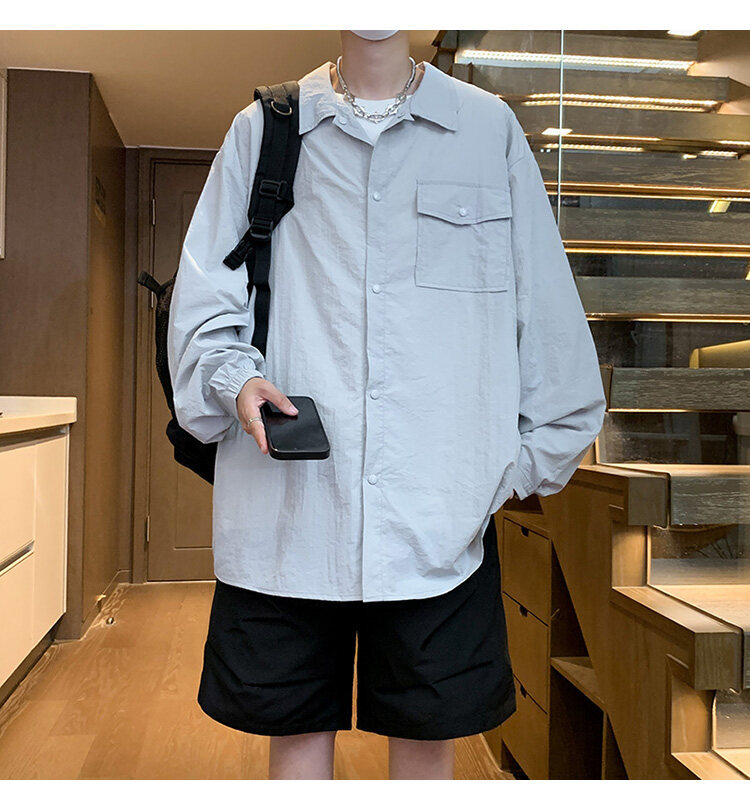 남성 셔츠 여름 신작 솔리드 컬러 패치 포켓 루즈 라펠 캐주얼 긴팔 셔츠 자외선 차단 셔츠 자외선 차단 셔츠스토어 가기