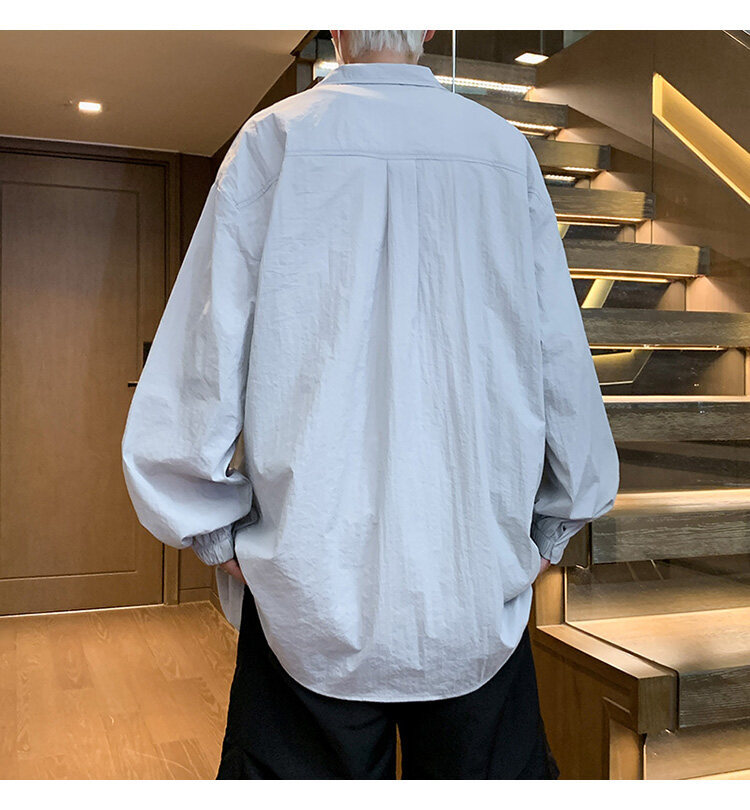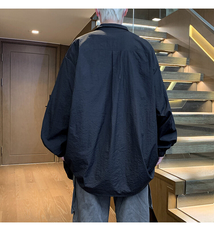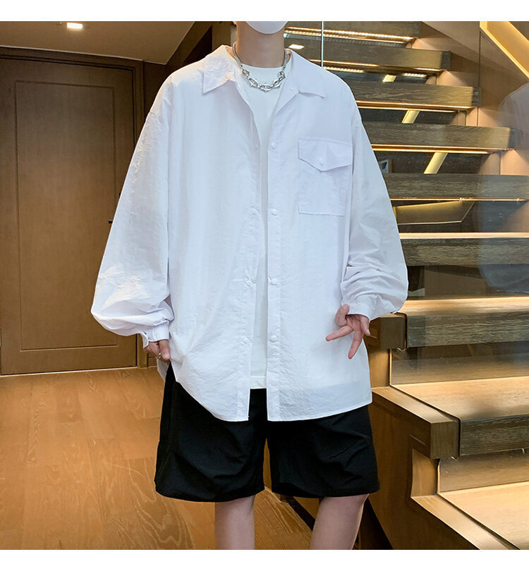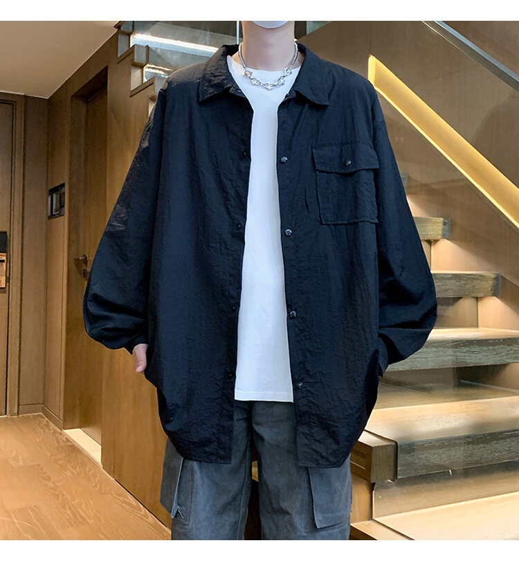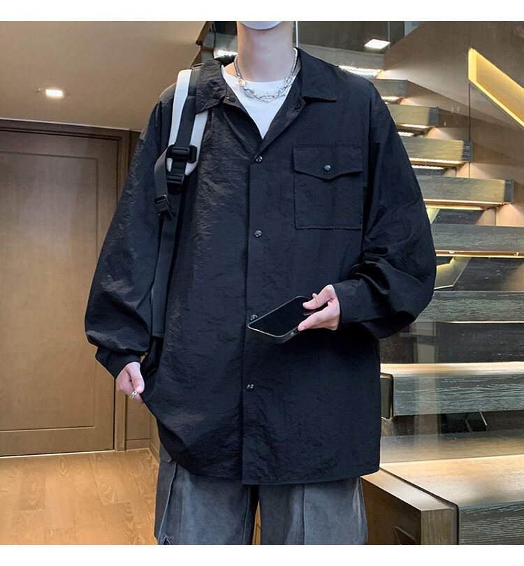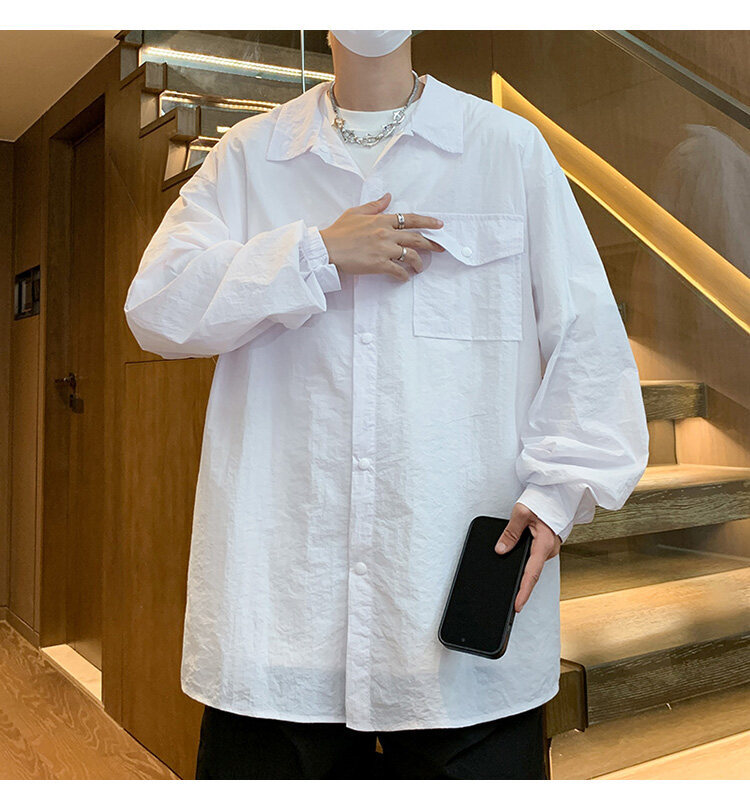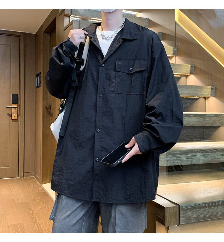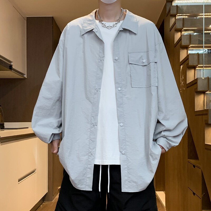 남성 셔츠 여름 신작 솔리드 컬러 패치 포켓 루즈 라펠 캐주얼 긴팔 셔츠 자외선 차단 셔츠 자외선 차단 셔츠스토어 가기