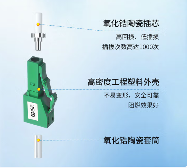 Boyang 음양 광섬유 감쇠기 25dB 통신 등급 LC/APC 남성-여성 어댑터 BY-SJ525A1