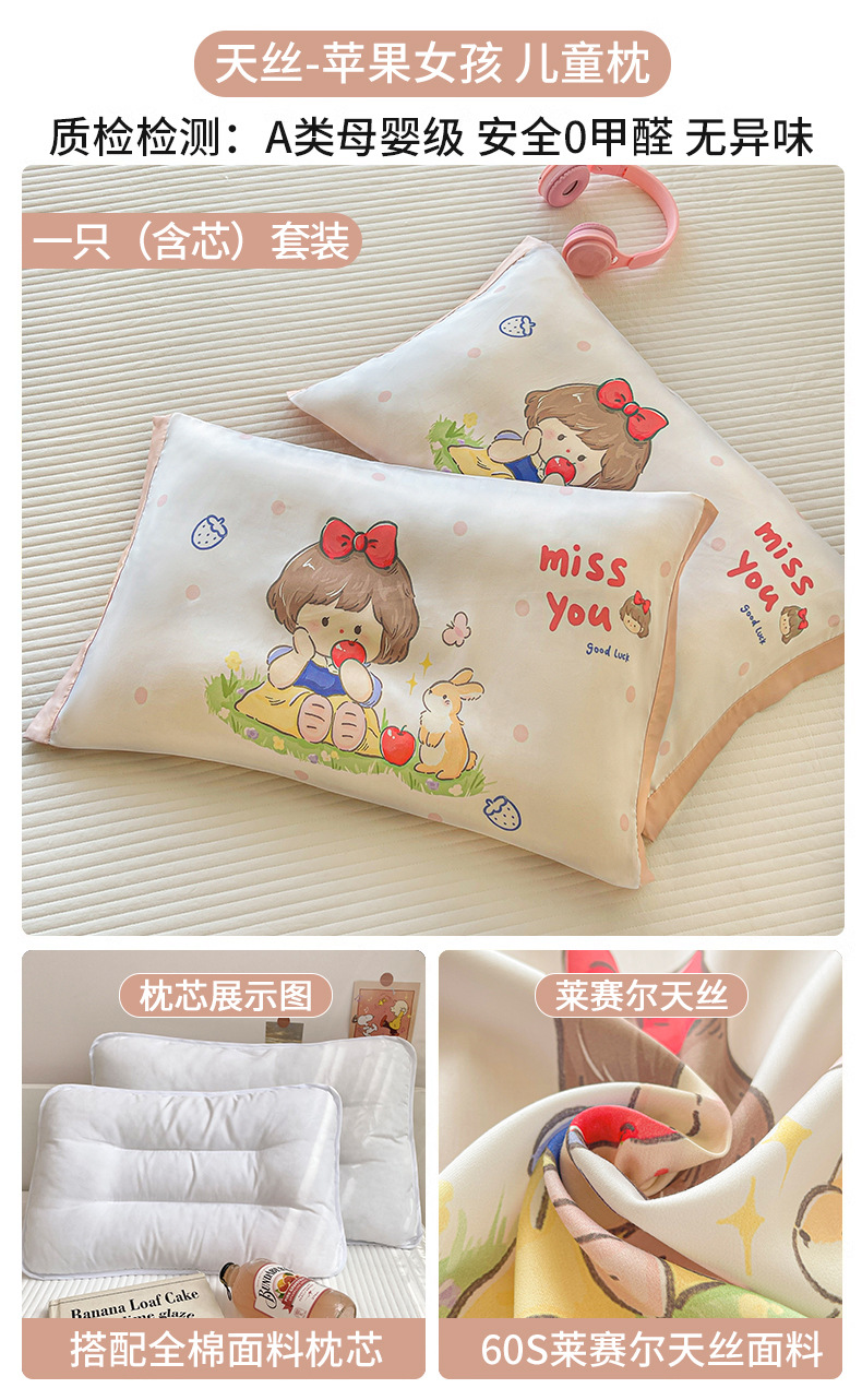 60s 텐셀 어린이 베개 커버 30x50 한 쌍의 얼음 실크 베개 커버 초등학생 만화 베개 코어 라이너 커버 싱글스토어 가기