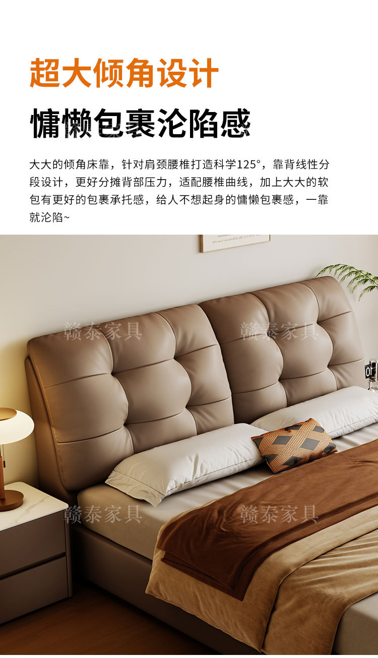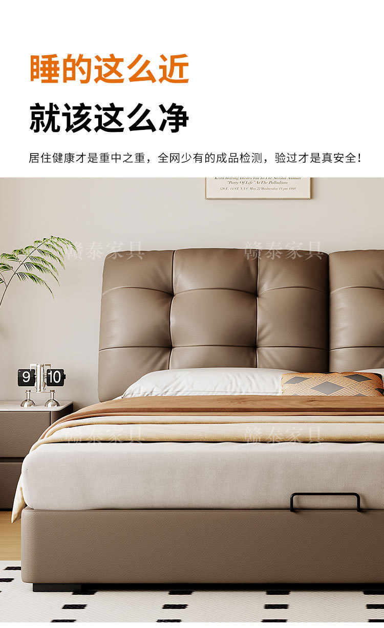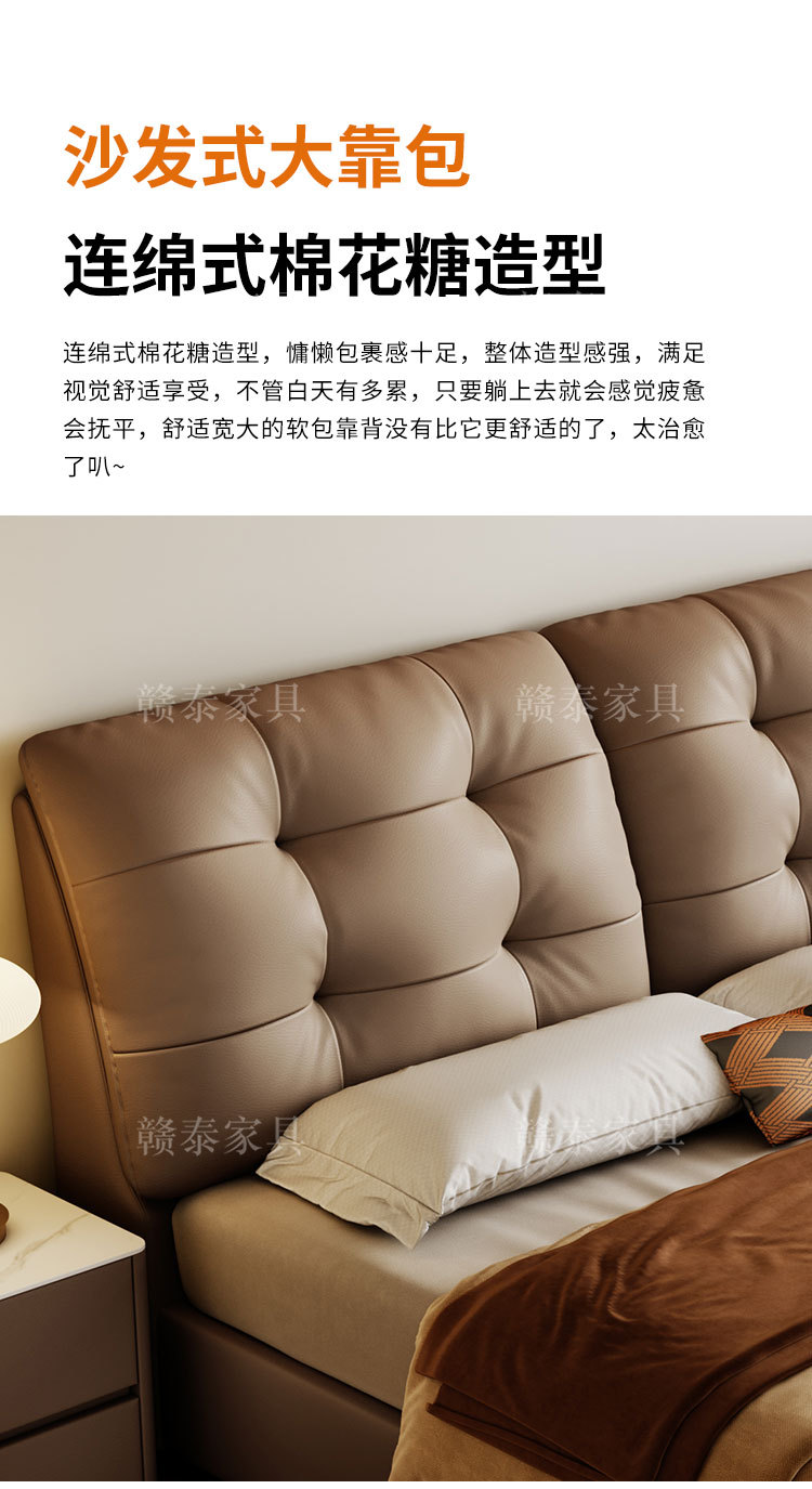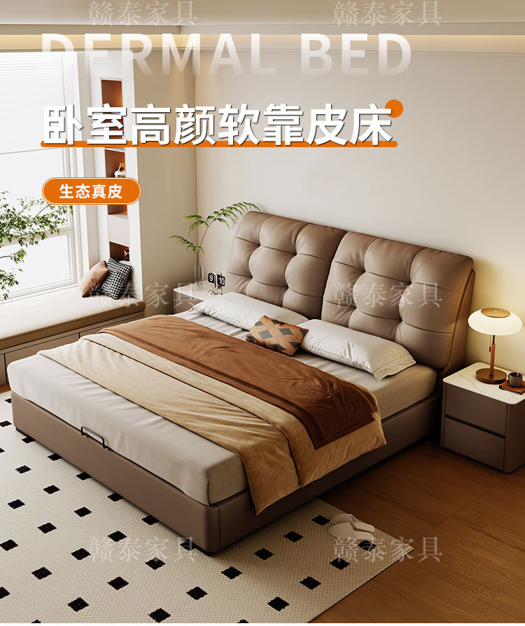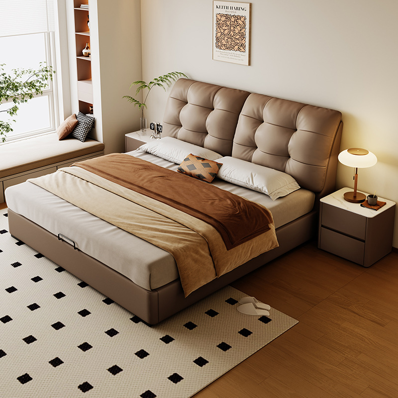 이탈리안 미니멀리스트 가죽 침대, 중고 대형 침대, 가벼운 럭셔리, 모던 심플 원목 소프트백 침대, 더블 침대, 웨딩 침대스토어 가기
