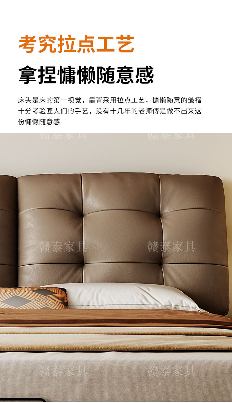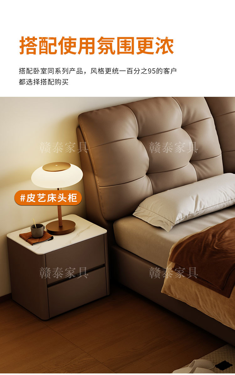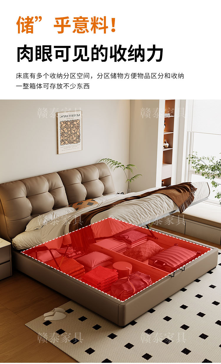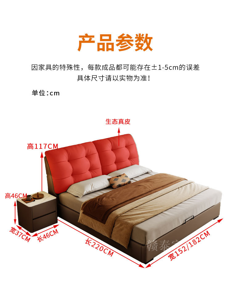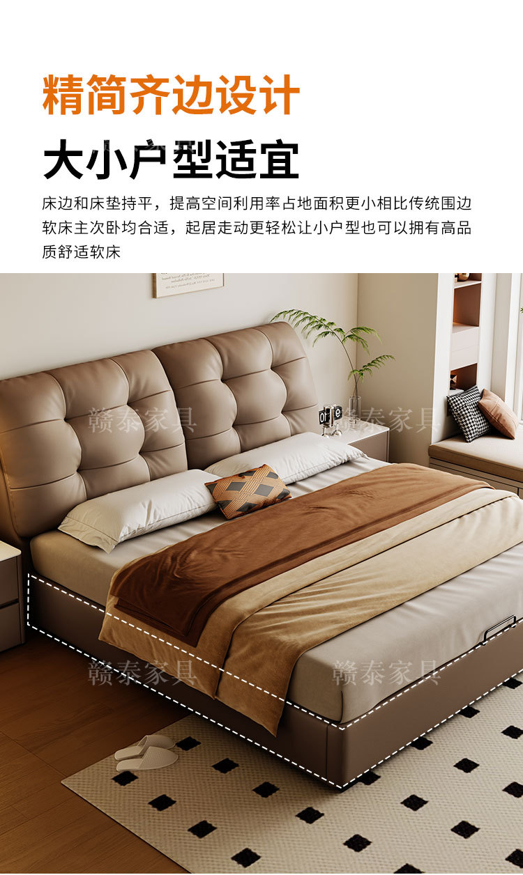 이탈리안 미니멀리스트 가죽 침대, 중고 대형 침대, 가벼운 럭셔리, 모던 심플 원목 소프트백 침대, 더블 침대, 웨딩 침대스토어 가기
