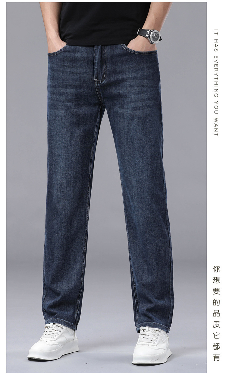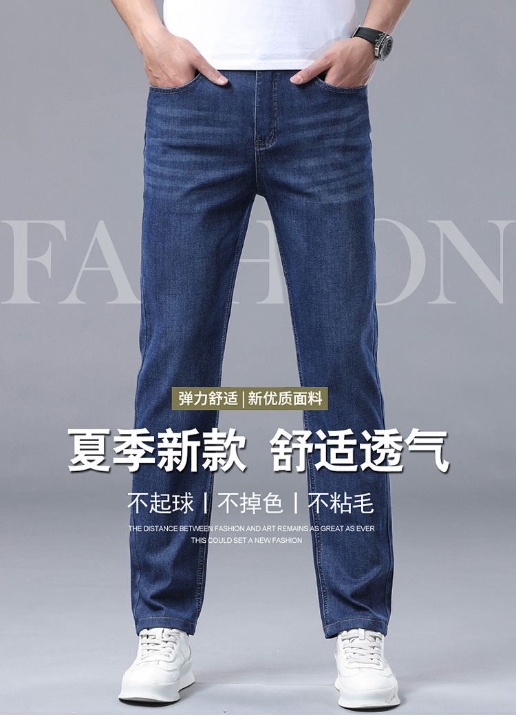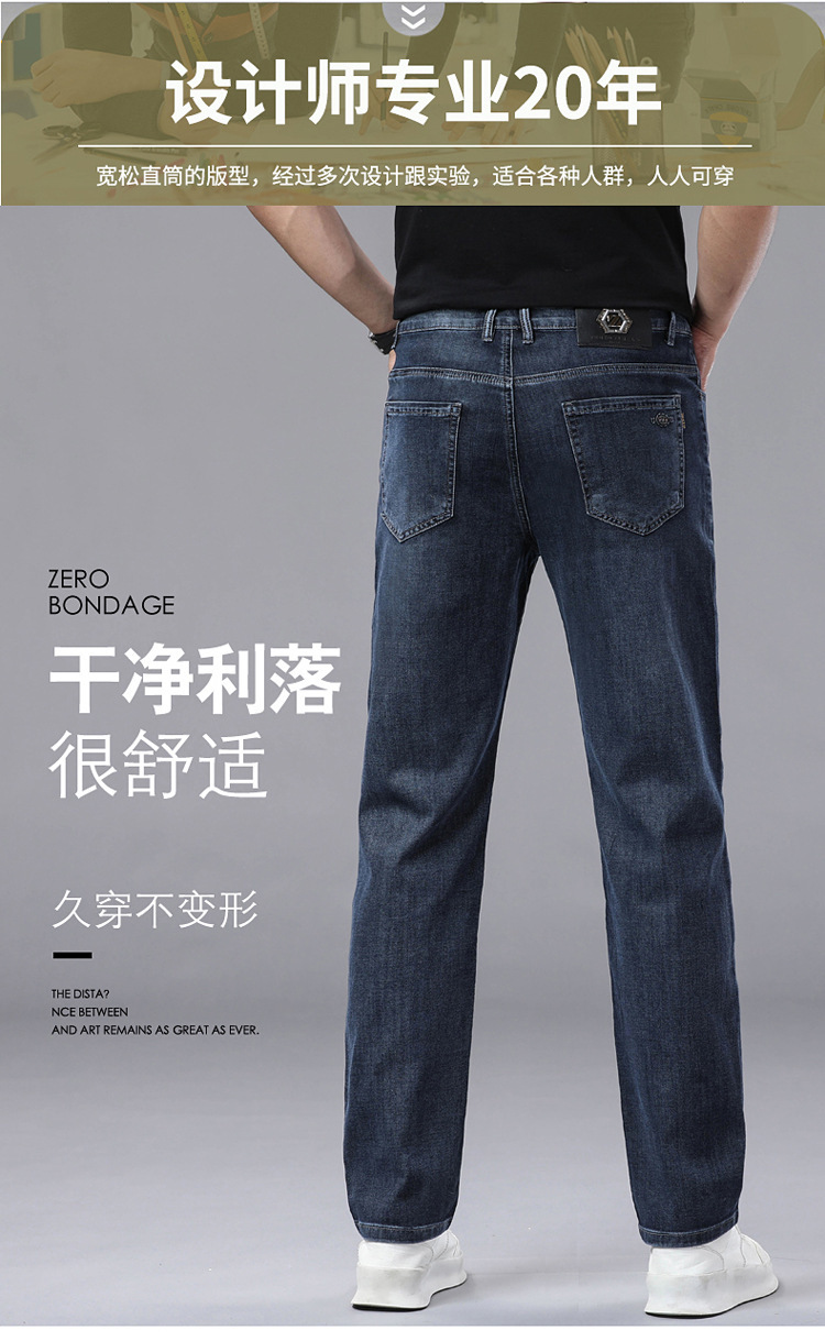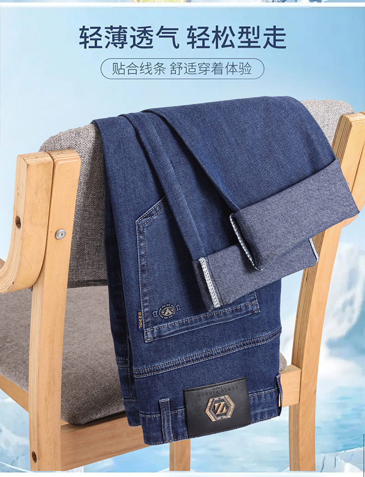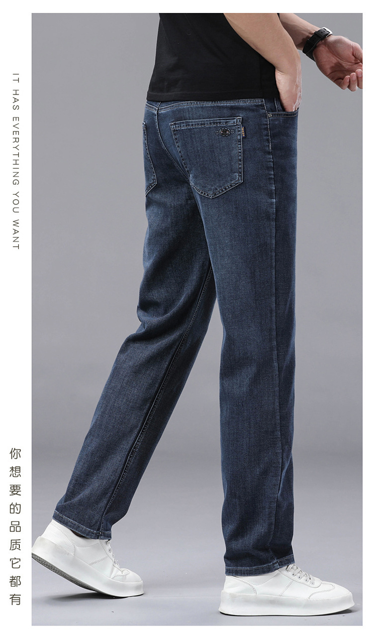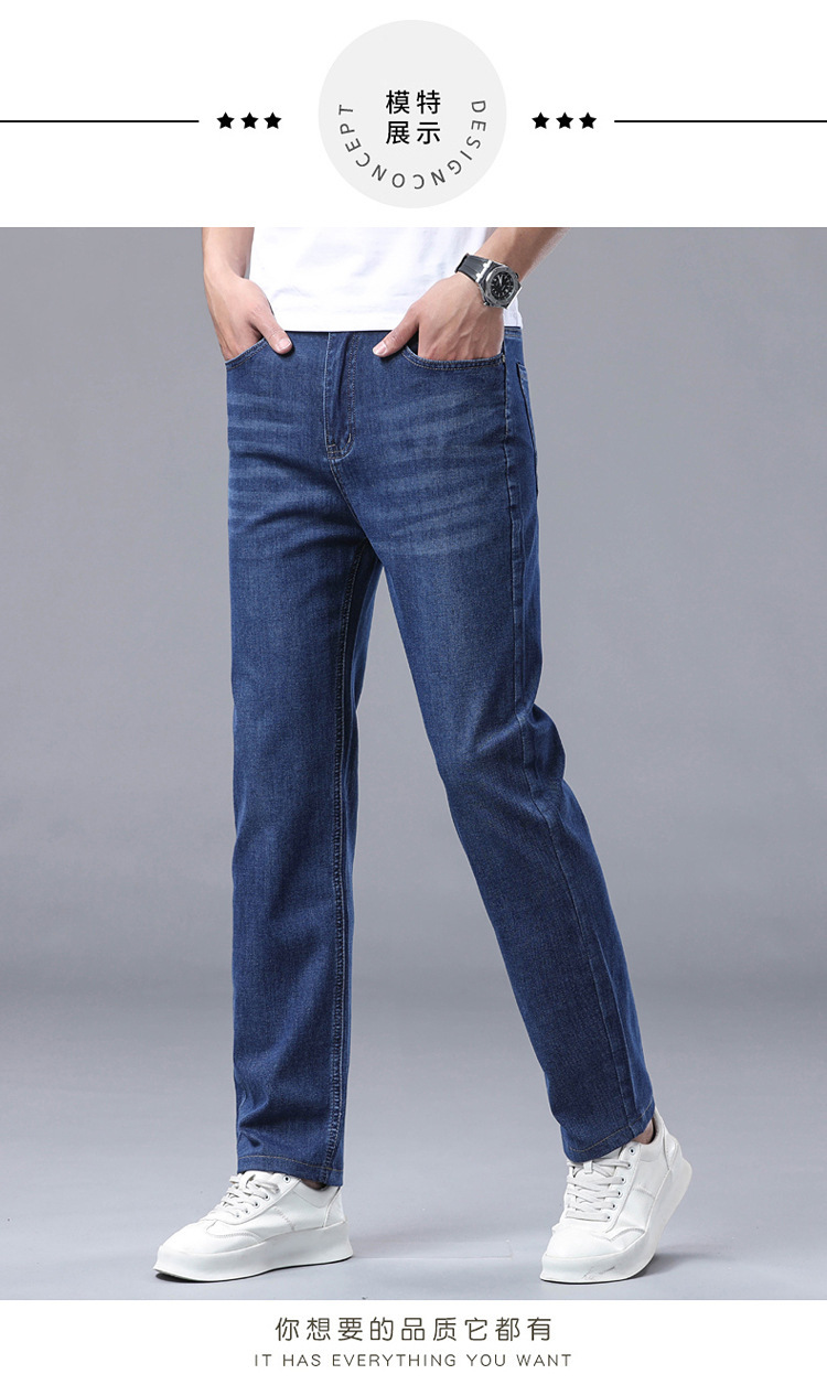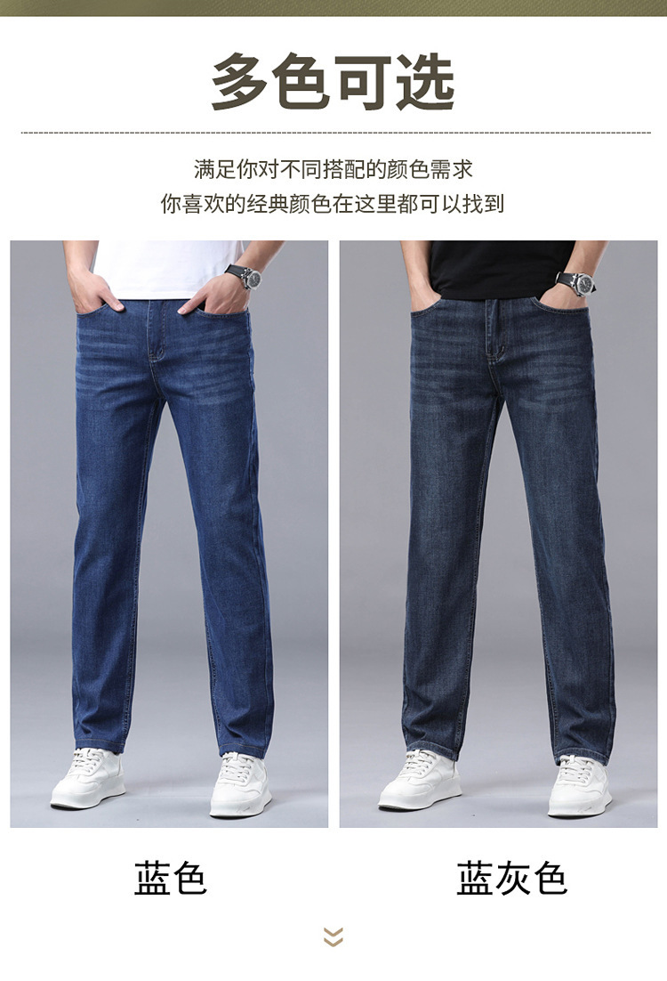 여름 얼음 실크 얇은 청바지 남성용 스트레이트 루즈 대형 스트레치 비즈니스 캐주얼 남성 바지스토어 가기