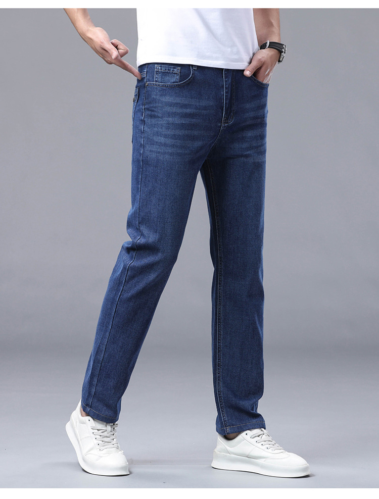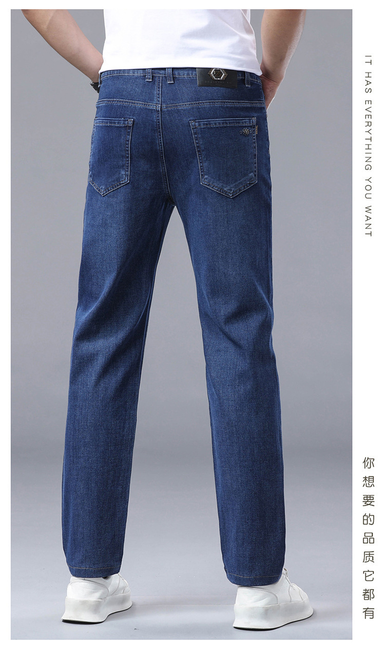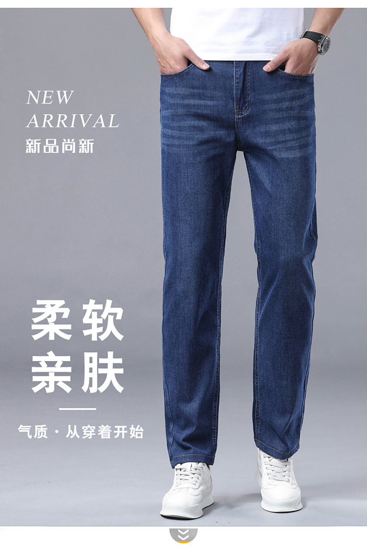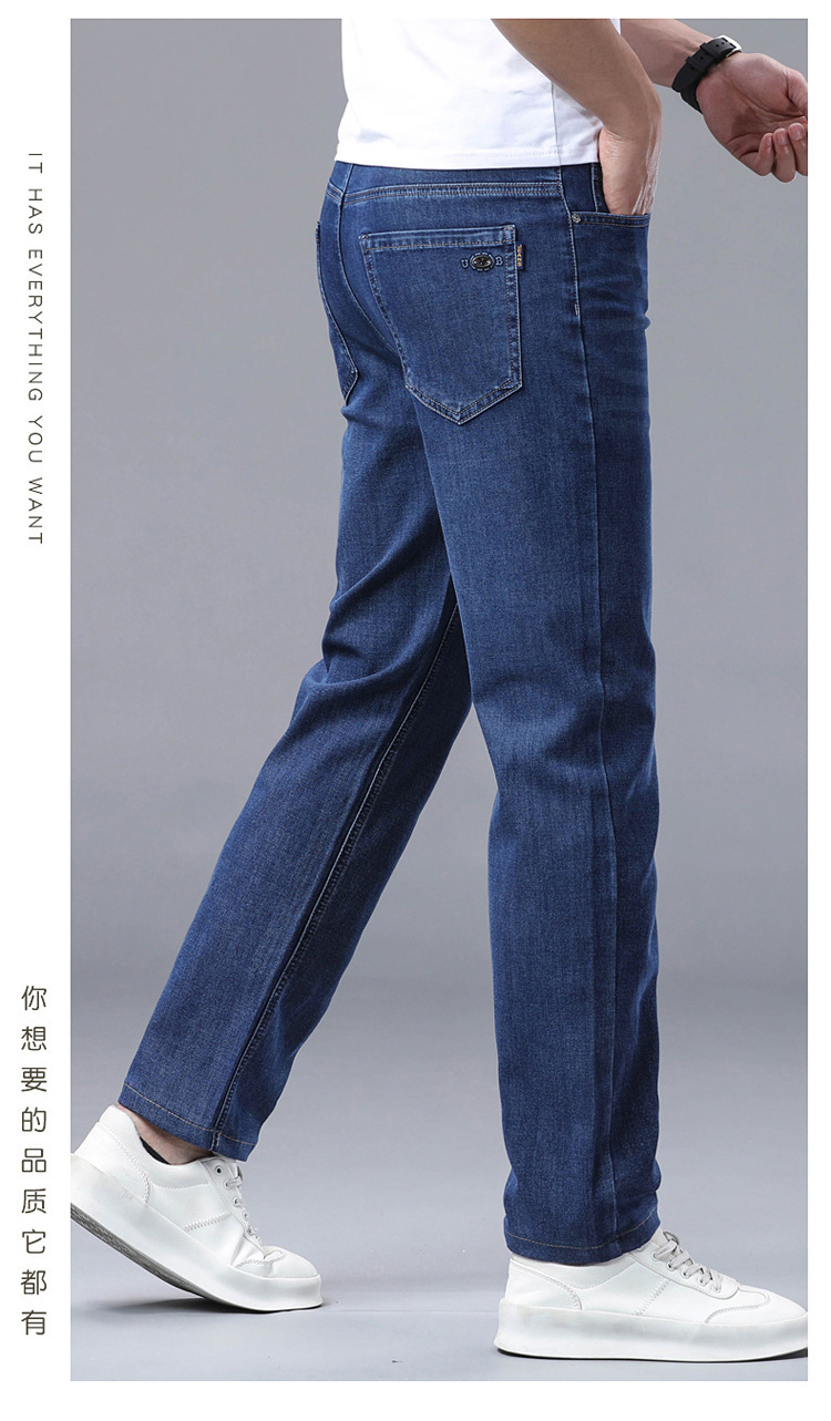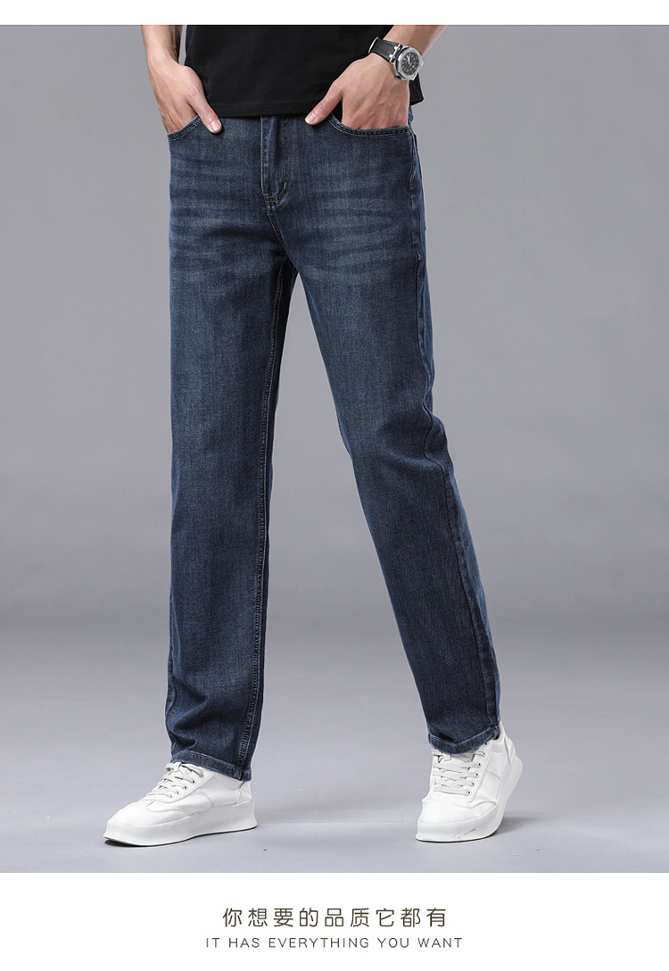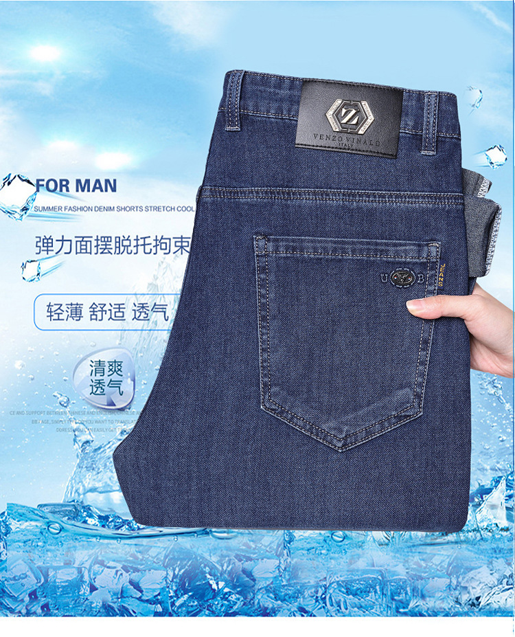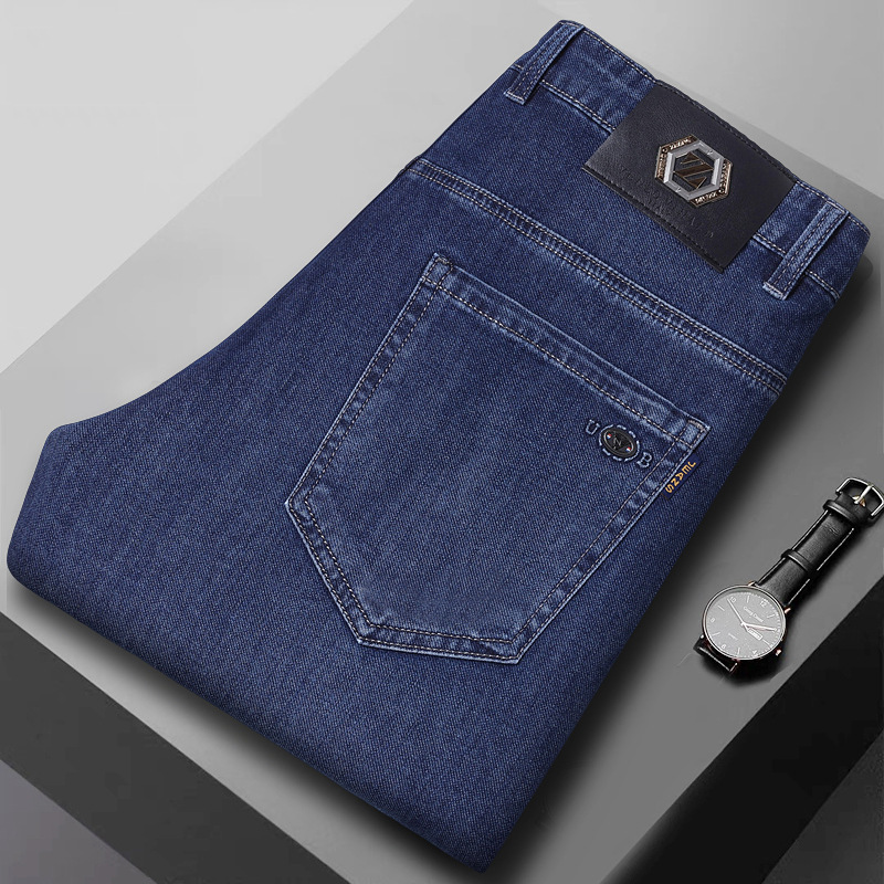여름 얼음 실크 얇은 청바지 남성용 스트레이트 루즈 대형 스트레치 비즈니스 캐주얼 남성 바지스토어 가기