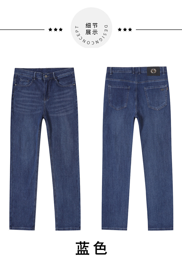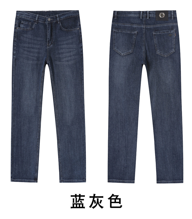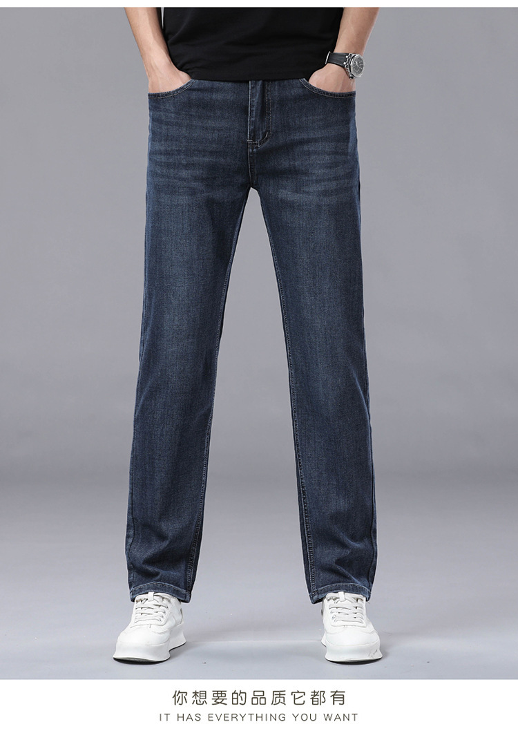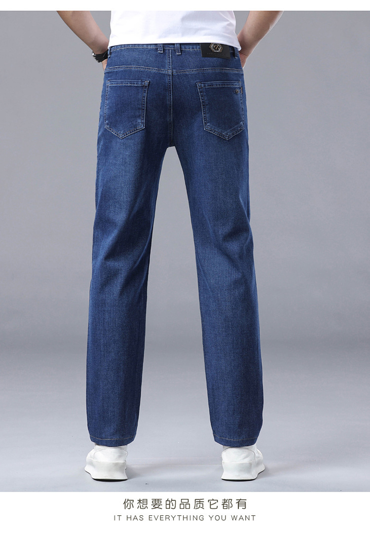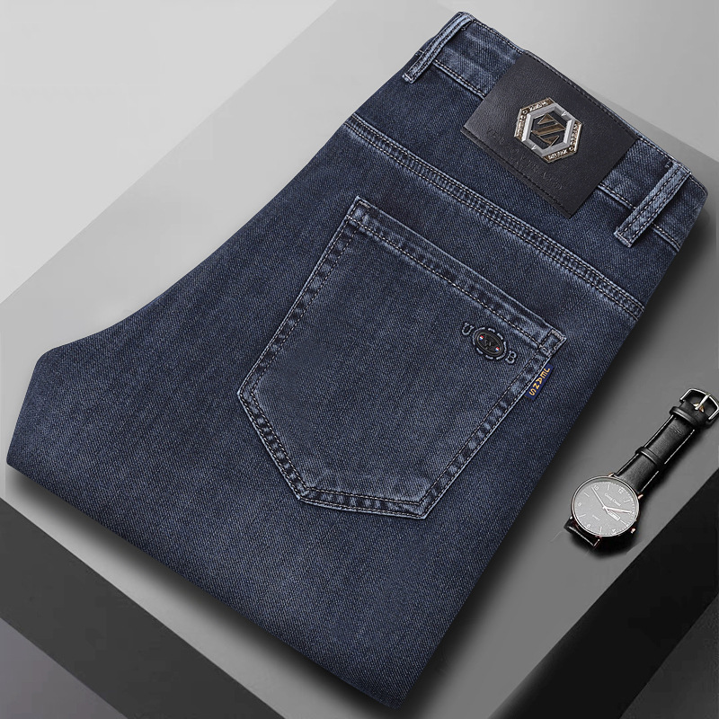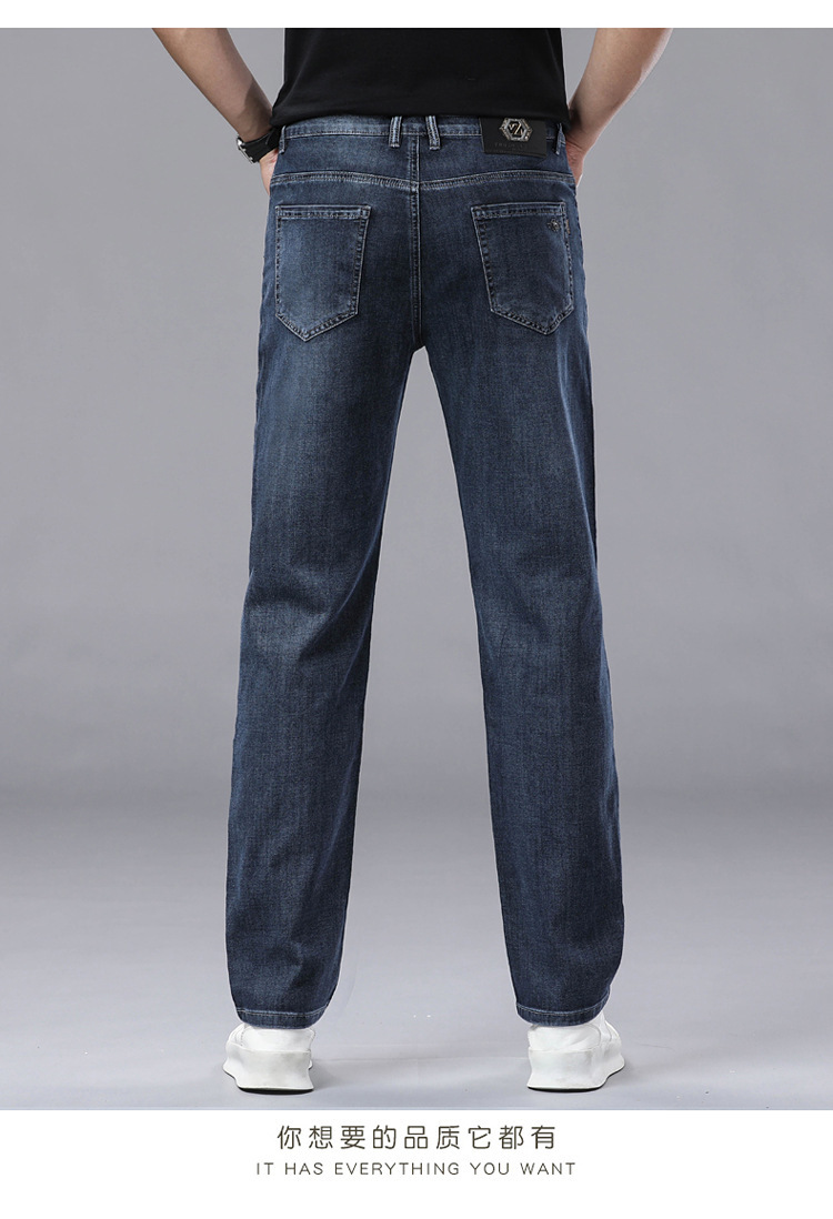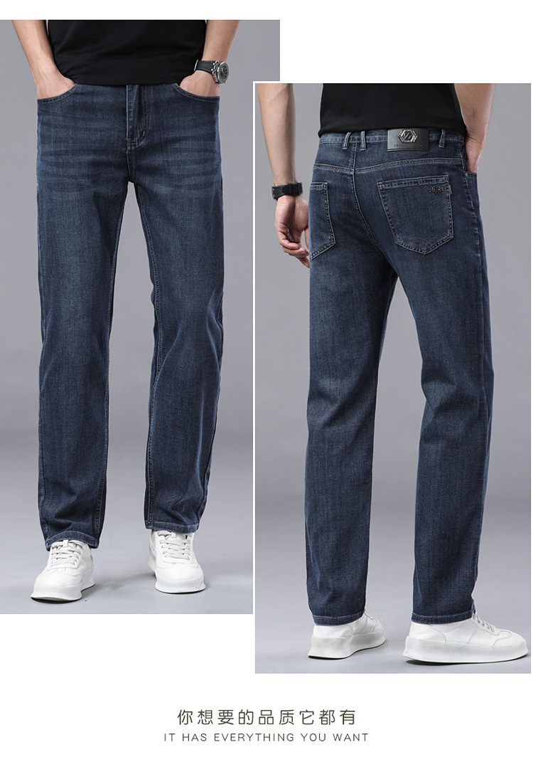 여름 얼음 실크 얇은 청바지 남성용 스트레이트 루즈 대형 스트레치 비즈니스 캐주얼 남성 바지스토어 가기