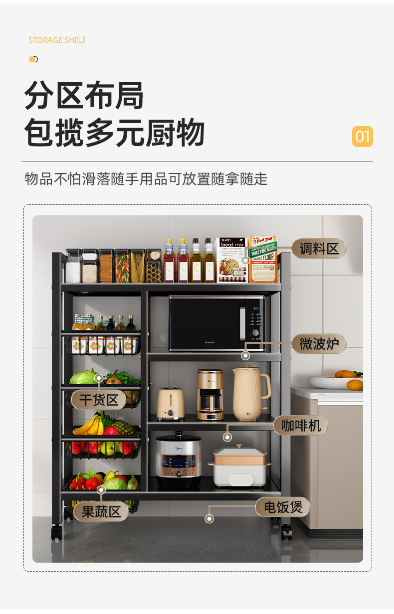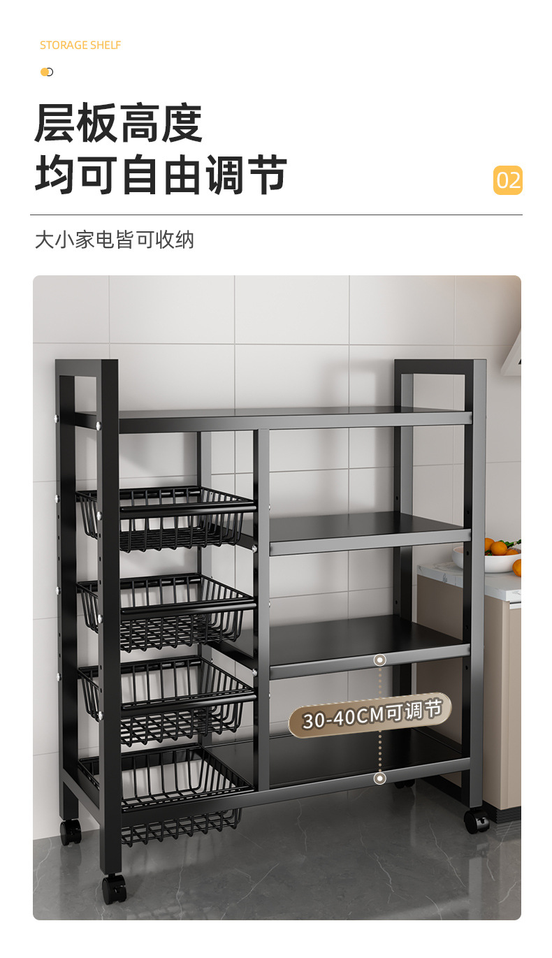 맞춤형 분할 주방 선반, 가정용 수납 선반, 바닥에서 천장까지 이어지는 다층 트롤리, 다용도 야채 바구니