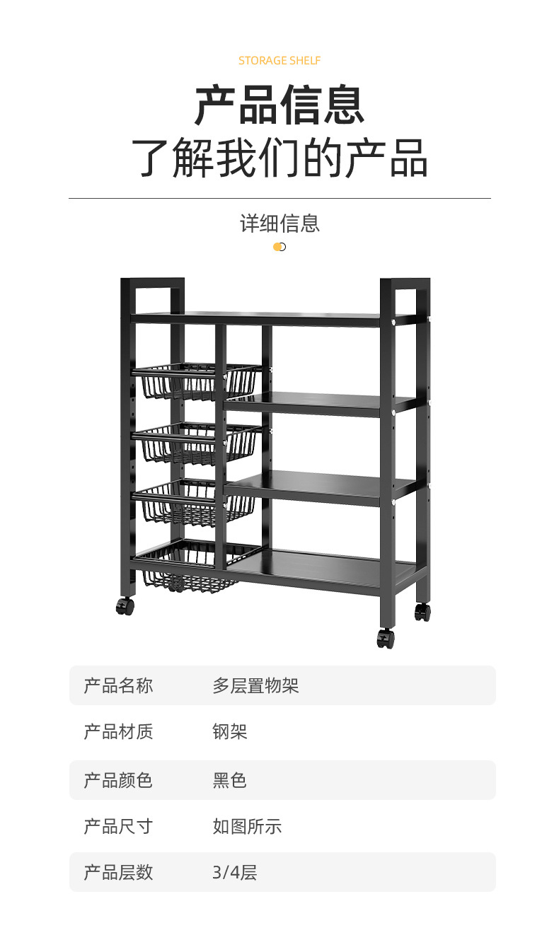 맞춤형 분할 주방 선반, 가정용 수납 선반, 바닥에서 천장까지 이어지는 다층 트롤리, 다용도 야채 바구니스토어 가기