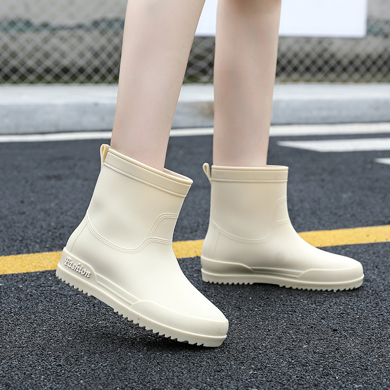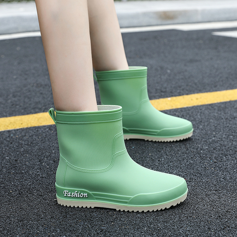 여성용 한국 국경 장화, 종아리 중간 패션 아우터 방수 장화, 여성용 하이 튜브 미끄럼 방지 내마모성 워터 슈즈 수출스토어 가기