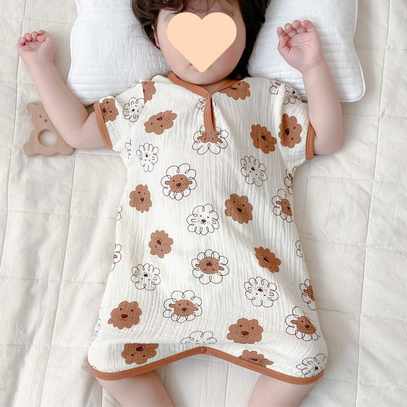 아기 원피스 잠옷 여름 얇은 소녀 면화 거즈 잠옷 반팔 어린이 가정 의류 킥 잠옷 남성용스토어 가기