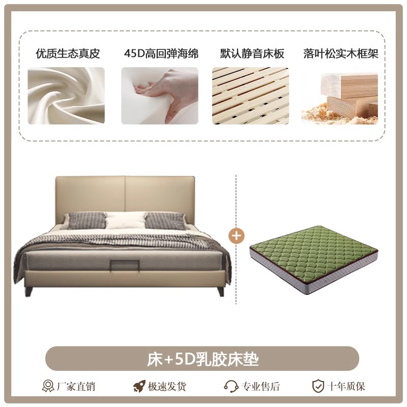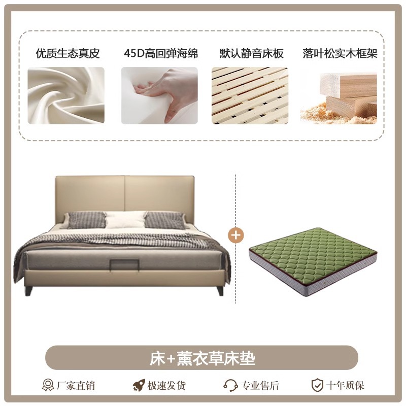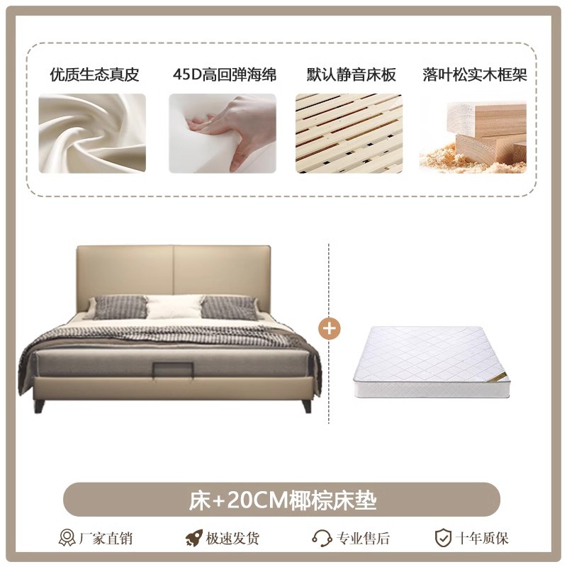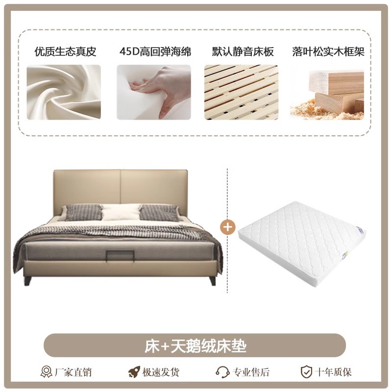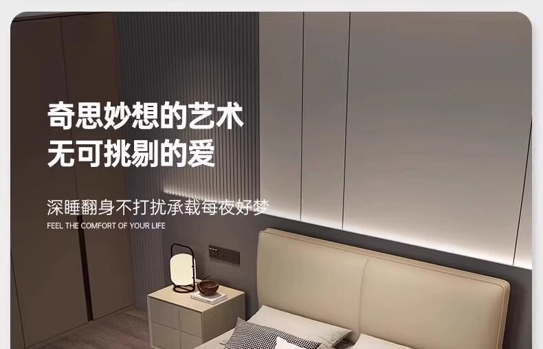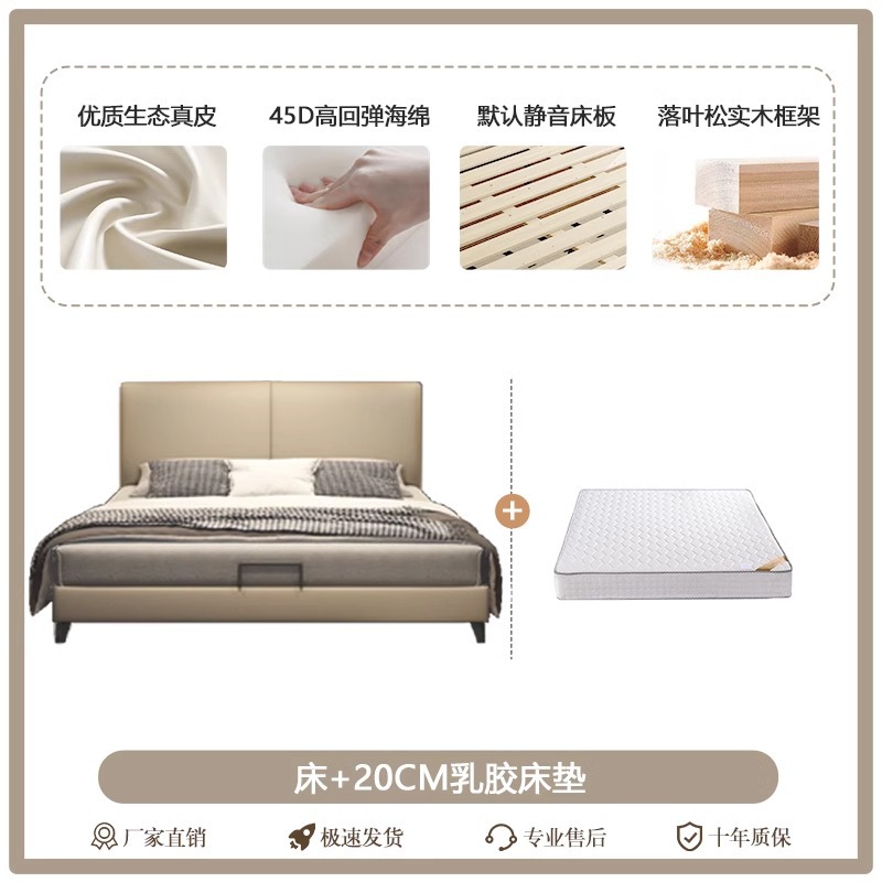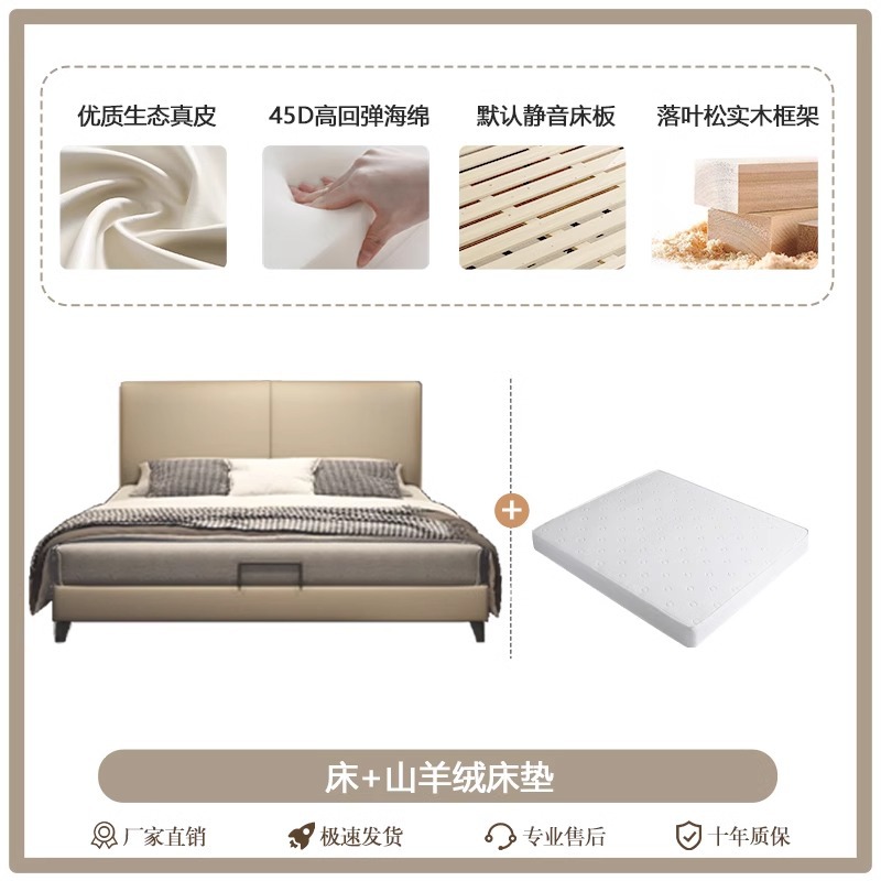 Little Black Cow 이탈리아 정품 가죽 침대 현대적인 미니멀리스트 1.95m 더블 침대 마스터 침실 하이 엔드 분위기있는 가죽 아트 침대스토어 가기
