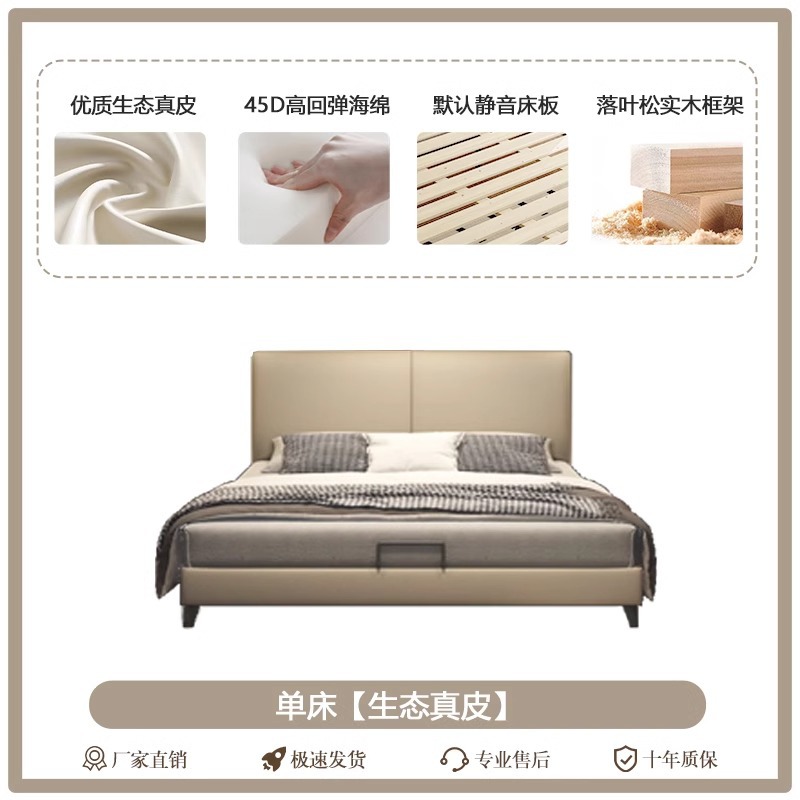 • 싱글 침대 [고급 천연가죽] 프레임 구조
