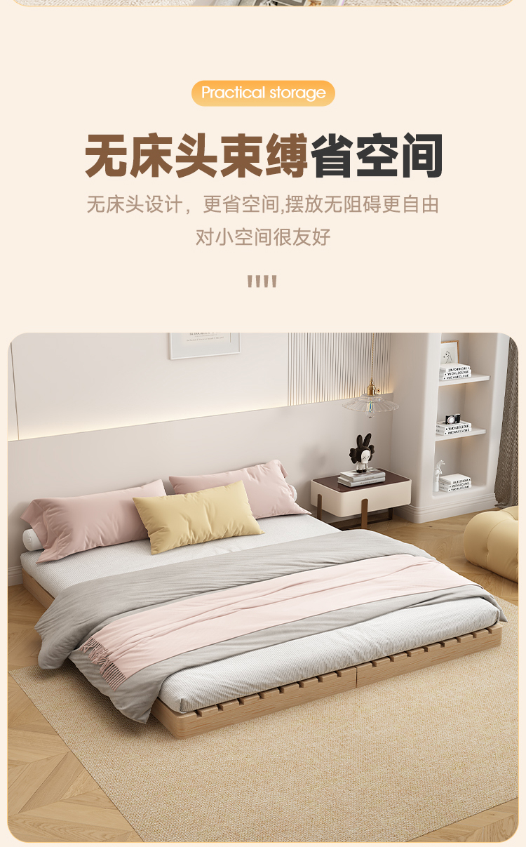 내 침대 프레임 다다미 간단한 바닥 침대 일본식 낮은 침대 단단한 나무 뼈대 침대 옆 바닥 침대 미터 침대 통나무 없음스토어 가기