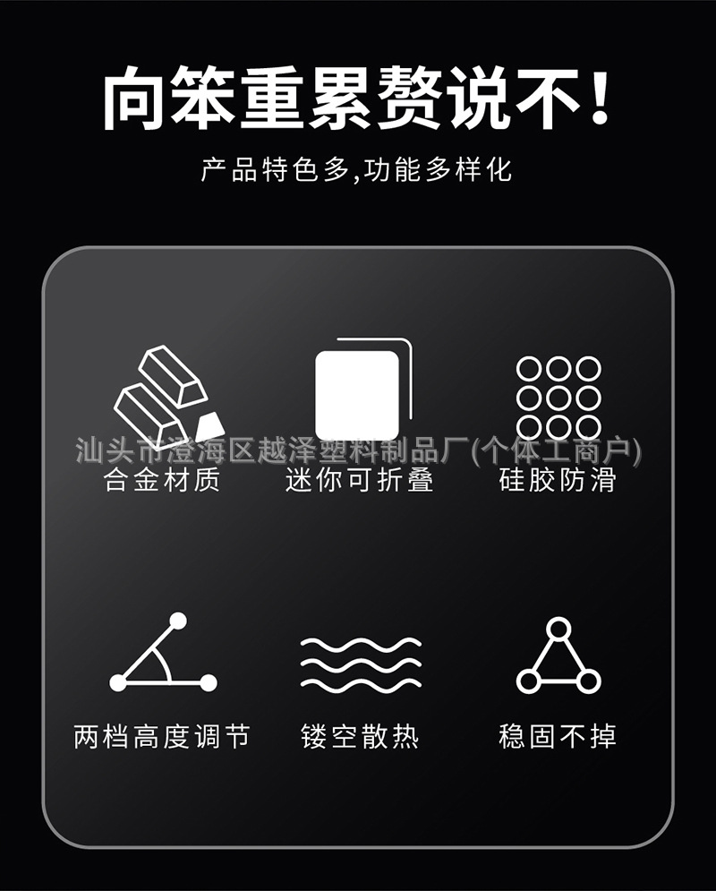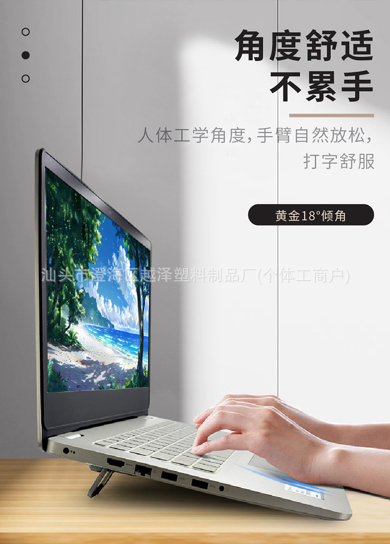 국경 간 인기 판매 알루미늄 합금 접이식 보이지 않는 브래킷 노트북 높이 냉각 브래킷 초박형 2단 조절