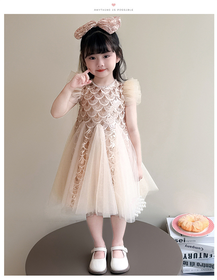 여자 스팽글 공주 드레스 여름 2025 새로운 스타일 어린이 드레스 스커트 여름 드레스 여자 메쉬 드레스스토어 가기