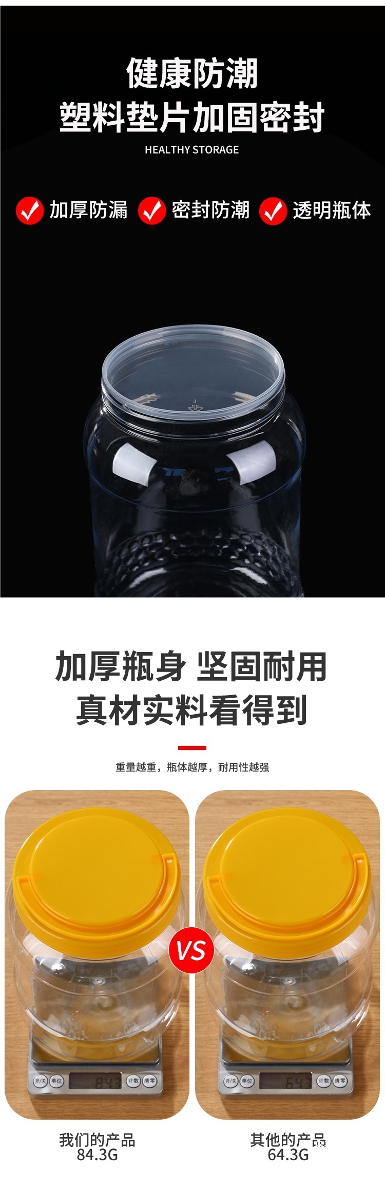 밀봉된 항아리, 꿀병, 플라스틱 병, 뚜껑이 있는 두꺼운 투명 빈 병, 매콤한 피클병, 식품용 대형 피클 항아리스토어 가기