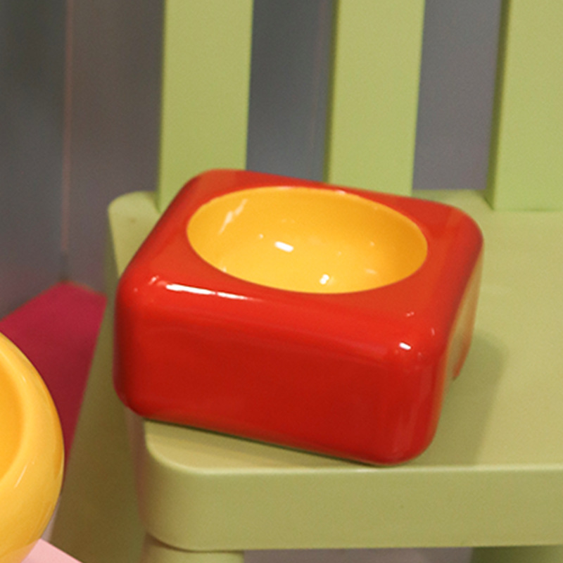 • 도파민 빌딩블록 스타일 세라믹 그릇-사각물그릇(빨간색과 노란색)